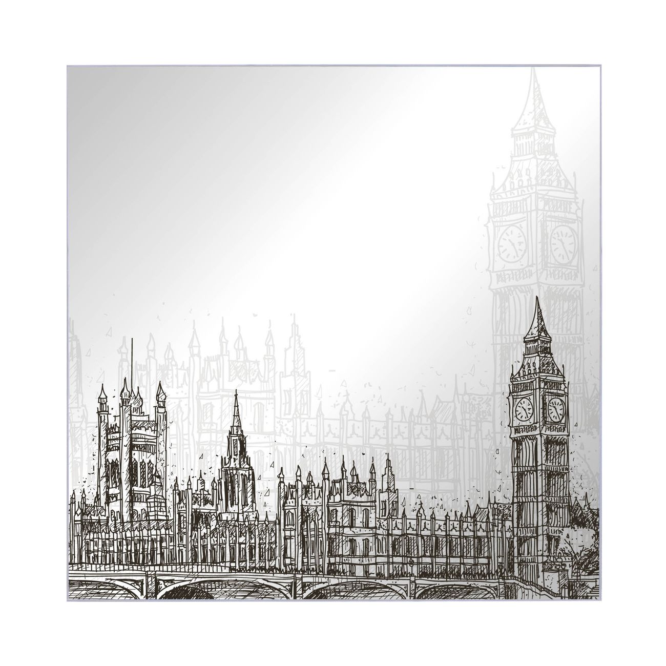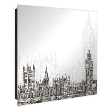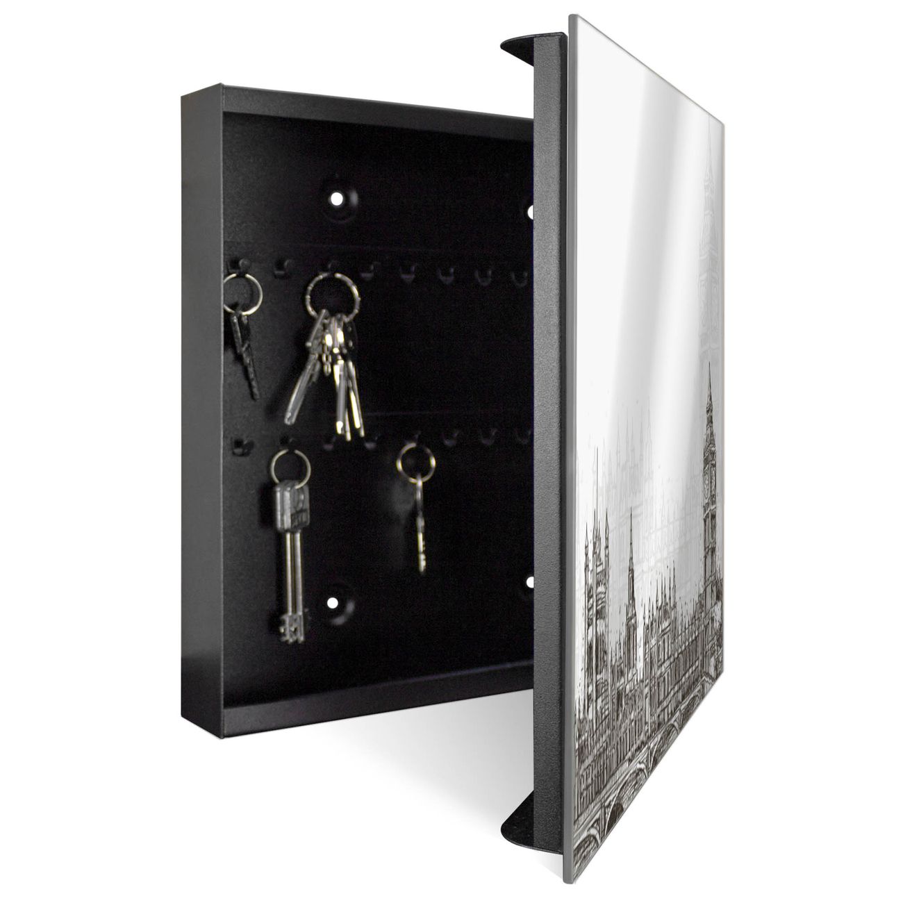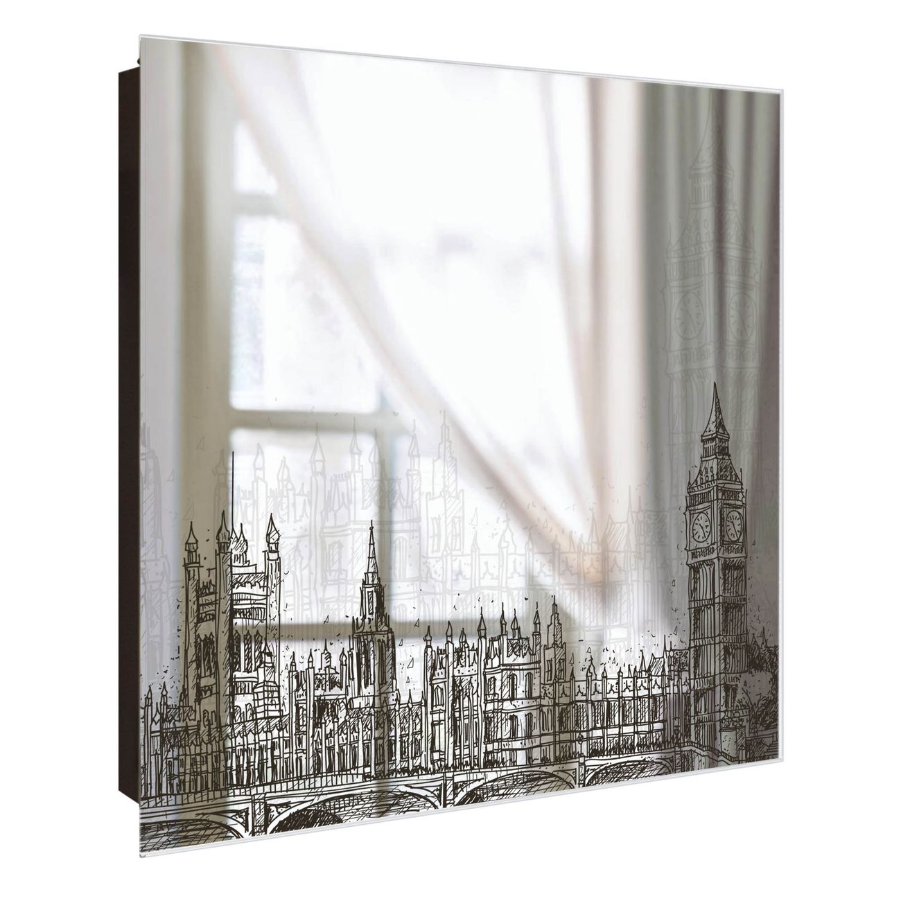 Spiegel Schlüsselkasten - Design Schlüsselbox Motiv London Skyline Skizze