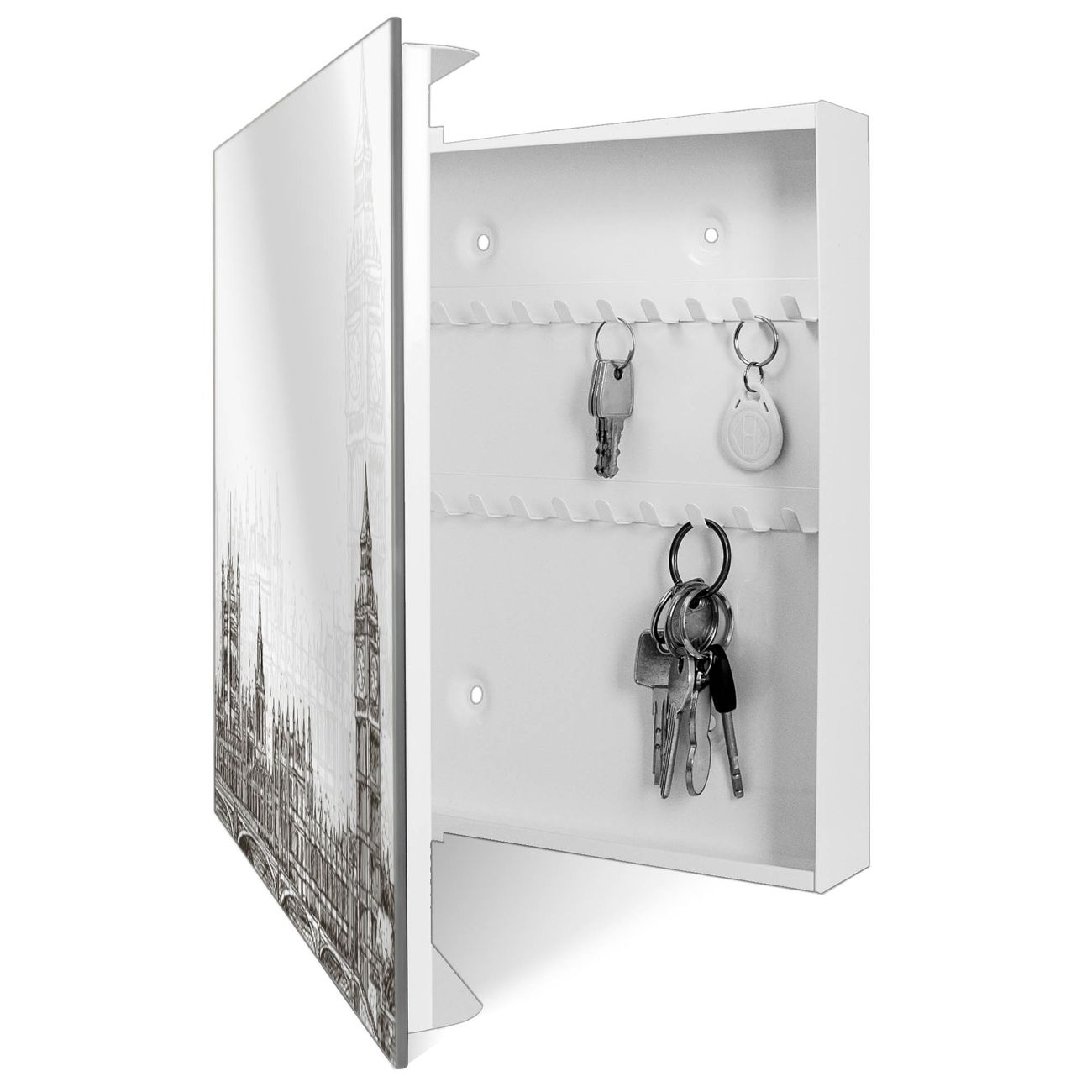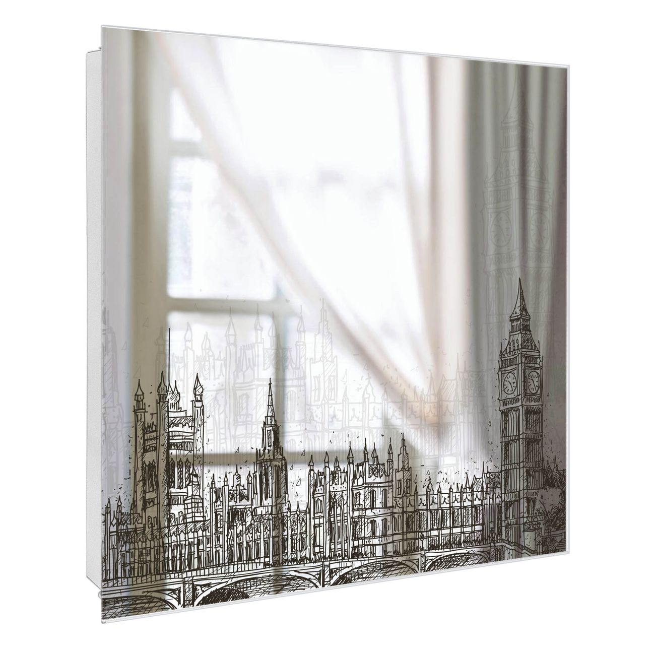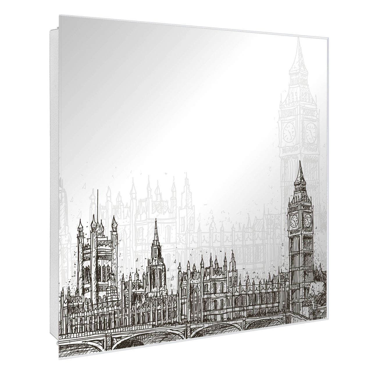 Spiegel Schlüsselkasten - Design Schlüsselbox Motiv London Skyline Skizze