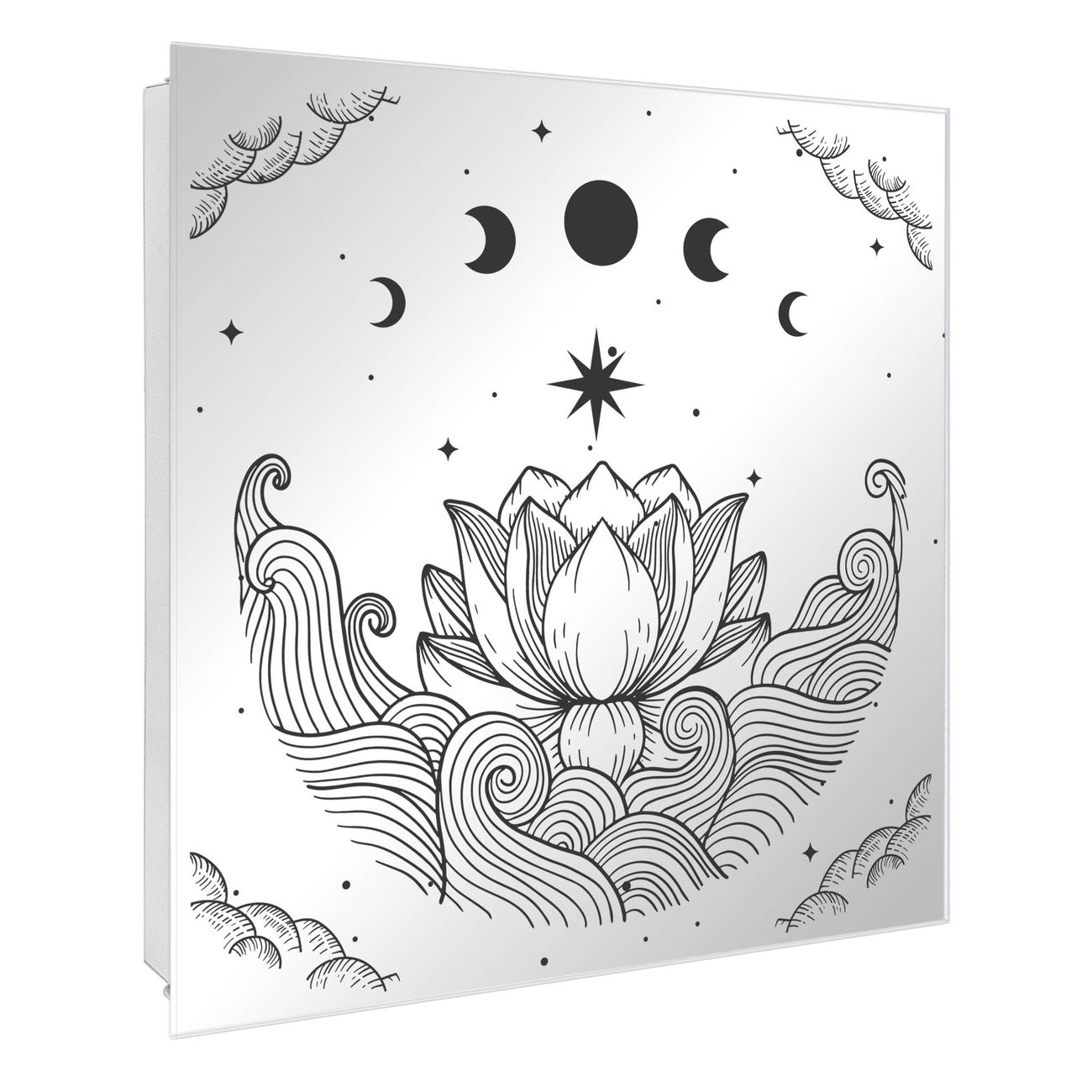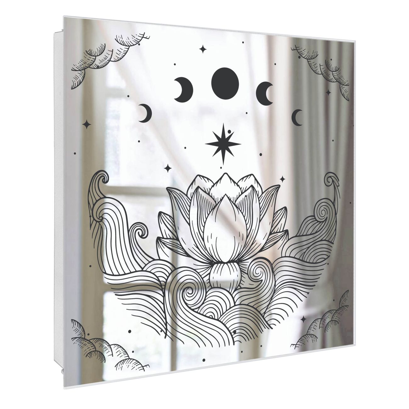 Spiegel Schlüsselkasten - Design Schlüsselbox Motiv Lotus und Mondphasen 2
