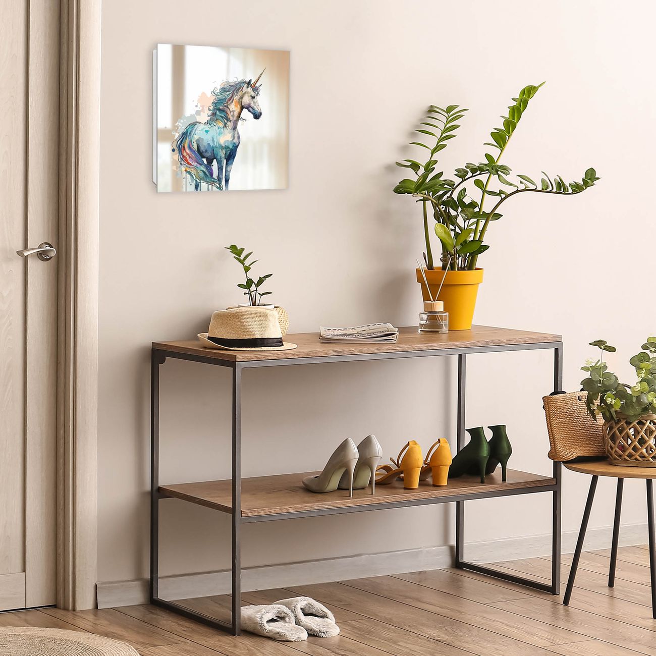 Bringe Ordnung und Stil in deinen Eingangsbereich mit dem banjado Schlüsselkasten mit Spiegel. Die elegante Spiegelfront kombiniert Funktionalität mit modernem Design und macht die Schlüsselaufbewahrung zu einem dekorativen Highlight. ✅ Spiegel Schlüsselaufbewahrung mit Motiv Motiv Magisches Einhorn Der Design-Schlüsselkasten Motiv Motiv Magisches Einhorn bietet Platz für bis zu 50 Schlüssel, die auf 5 stabilen Reihen mit je 10 Haken übersichtlich verstaut werden. Mit seinen kompakten Maßen von 30 x 30 x 5 cm passt die Schlüsselbox perfekt auch in kleinere Räume. Der weiß lackierte Stahlkorpus mit rechts angeschlagenem Türscharnier harmoniert mit der Spiegelfront und fügt sich nahtlos in jedes Wohnambiente ein. Ob als Schlüsselorganizer für Zuhause oder als praktische Lösung für Büros, Praxen und Gewerbe, der banjado Schlüsselkasten sorgt für Ordnung und Übersicht. Die Spiegelfront verleiht dem Eingangsbereich zusätzliche Funktionalität und lässt Räume optisch größer wirken. Die Schlüsselbox Motiv Motiv Magisches Einhorn zur Wandmontage wird inklusive Befestigungsmaterial geliefert und ist schnell angebracht. So hast du deine Schlüssel jederzeit griffbereit und zugleich stilvoll verstaut. Mit diesem banjado Schlüsselkasten Motiv Motiv Magisches Einhorn kombinierst du praktische Aufbewahrung mit stilvollem Wohndesign. Ob privat oder geschäftlich, die Schlüsselbox sorgt für mehr Ordnung, Übersicht und ein wohnliches Ambiente.Vorteile im Überblick