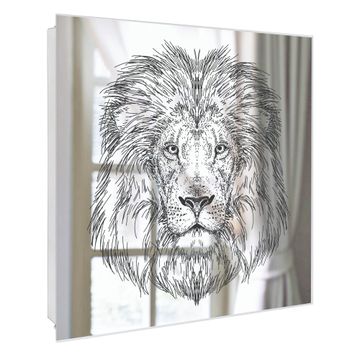 Spiegel Schlüsselkasten - Design Schlüsselbox Motiv Majestätischer Löwe