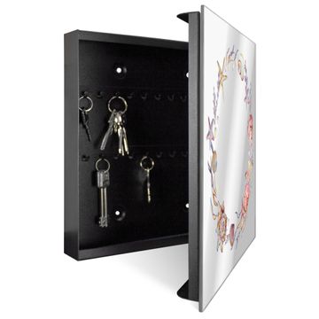 Bringe Ordnung und Stil in deinen Eingangsbereich mit dem banjado Schlüsselkasten mit Spiegel. Die elegante Spiegelfront kombiniert Funktionalität mit modernem Design und macht die Schlüsselaufbewahrung zu einem dekorativen Highlight. ✅ Spiegel Schlüsselaufbewahrung mit Motiv Motiv Maritime Kranz Der Design-Schlüsselkasten Motiv Motiv Maritime Kranz bietet Platz für bis zu 50 Schlüssel, die auf 5 stabilen Reihen mit je 10 Haken übersichtlich verstaut werden. Mit seinen kompakten Maßen von 30 x 30 x 5 cm passt die Schlüsselbox perfekt auch in kleinere Räume. Der schwarz lackierte Stahlkorpus mit rechts angeschlagenem Türscharnier harmoniert mit der Spiegelfront und fügt sich nahtlos in jedes Wohnambiente ein. Ob als Schlüsselorganizer für Zuhause oder als praktische Lösung für Büros, Praxen und Gewerbe, der banjado Schlüsselkasten sorgt für Ordnung und Übersicht. Die Spiegelfront verleiht dem Eingangsbereich zusätzliche Funktionalität und lässt Räume optisch größer wirken. Die Schlüsselbox Motiv Motiv Maritime Kranz zur Wandmontage wird inklusive Befestigungsmaterial geliefert und ist schnell angebracht. So hast du deine Schlüssel jederzeit griffbereit und zugleich stilvoll verstaut. Mit diesem banjado Schlüsselkasten Motiv Motiv Maritime Kranz kombinierst du praktische Aufbewahrung mit stilvollem Wohndesign. Ob privat oder geschäftlich, die Schlüsselbox sorgt für mehr Ordnung, Übersicht und ein wohnliches Ambiente.Vorteile im Überblick