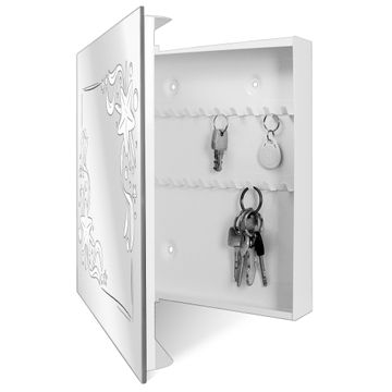 Bringe Ordnung und Stil in deinen Eingangsbereich mit dem banjado Schlüsselkasten mit Spiegel. Die elegante Spiegelfront kombiniert Funktionalität mit modernem Design und macht die Schlüsselaufbewahrung zu einem dekorativen Highlight. ✅ Spiegel Schlüsselaufbewahrung mit Motiv Motiv Maritimer Seesternrahmen Der Design-Schlüsselkasten Motiv Motiv Maritimer Seesternrahmen bietet Platz für bis zu 50 Schlüssel, die auf 5 stabilen Reihen mit je 10 Haken übersichtlich verstaut werden. Mit seinen kompakten Maßen von 30 x 30 x 5 cm passt die Schlüsselbox perfekt auch in kleinere Räume. Der weiß lackierte Stahlkorpus mit rechts angeschlagenem Türscharnier harmoniert mit der Spiegelfront und fügt sich nahtlos in jedes Wohnambiente ein. Ob als Schlüsselorganizer für Zuhause oder als praktische Lösung für Büros, Praxen und Gewerbe, der banjado Schlüsselkasten sorgt für Ordnung und Übersicht. Die Spiegelfront verleiht dem Eingangsbereich zusätzliche Funktionalität und lässt Räume optisch größer wirken. Die Schlüsselbox Motiv Motiv Maritimer Seesternrahmen zur Wandmontage wird inklusive Befestigungsmaterial geliefert und ist schnell angebracht. So hast du deine Schlüssel jederzeit griffbereit und zugleich stilvoll verstaut. Mit diesem banjado Schlüsselkasten Motiv Motiv Maritimer Seesternrahmen kombinierst du praktische Aufbewahrung mit stilvollem Wohndesign. Ob privat oder geschäftlich, die Schlüsselbox sorgt für mehr Ordnung, Übersicht und ein wohnliches Ambiente.Vorteile im Überblick