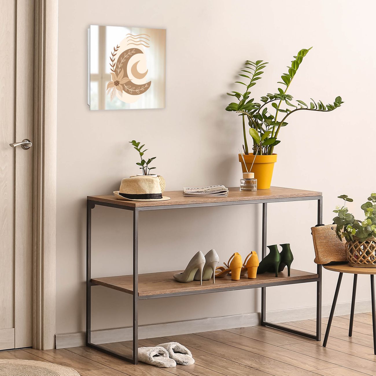 Bringe Ordnung und Stil in deinen Eingangsbereich mit dem banjado Schlüsselkasten mit Spiegel. Die elegante Spiegelfront kombiniert Funktionalität mit modernem Design und macht die Schlüsselaufbewahrung zu einem dekorativen Highlight. ✅ Spiegel Schlüsselaufbewahrung mit Motiv Motiv Mondblume Der Design-Schlüsselkasten Motiv Motiv Mondblume bietet Platz für bis zu 50 Schlüssel, die auf 5 stabilen Reihen mit je 10 Haken übersichtlich verstaut werden. Mit seinen kompakten Maßen von 30 x 30 x 5 cm passt die Schlüsselbox perfekt auch in kleinere Räume. Der weiß lackierte Stahlkorpus mit rechts angeschlagenem Türscharnier harmoniert mit der Spiegelfront und fügt sich nahtlos in jedes Wohnambiente ein. Ob als Schlüsselorganizer für Zuhause oder als praktische Lösung für Büros, Praxen und Gewerbe, der banjado Schlüsselkasten sorgt für Ordnung und Übersicht. Die Spiegelfront verleiht dem Eingangsbereich zusätzliche Funktionalität und lässt Räume optisch größer wirken. Die Schlüsselbox Motiv Motiv Mondblume zur Wandmontage wird inklusive Befestigungsmaterial geliefert und ist schnell angebracht. So hast du deine Schlüssel jederzeit griffbereit und zugleich stilvoll verstaut. Mit diesem banjado Schlüsselkasten Motiv Motiv Mondblume kombinierst du praktische Aufbewahrung mit stilvollem Wohndesign. Ob privat oder geschäftlich, die Schlüsselbox sorgt für mehr Ordnung, Übersicht und ein wohnliches Ambiente.Vorteile im Überblick