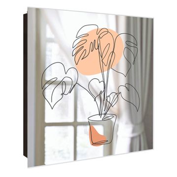 Spiegel Schlüsselkasten - Design Schlüsselbox Motiv Monstera Skizze
