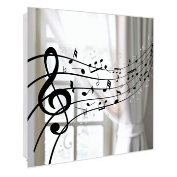 Spiegel Schlüsselkasten - Design Schlüsselbox Motiv Musikalische Noten