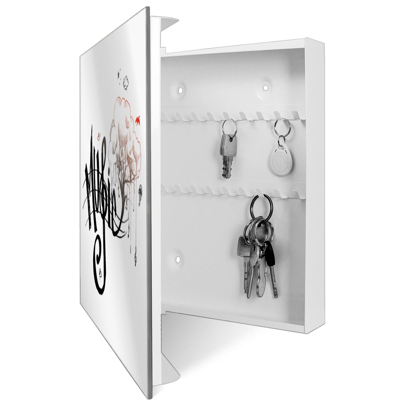 Spiegel Schlüsselkasten - Design Schlüsselbox Motiv Musikbaum Illustration