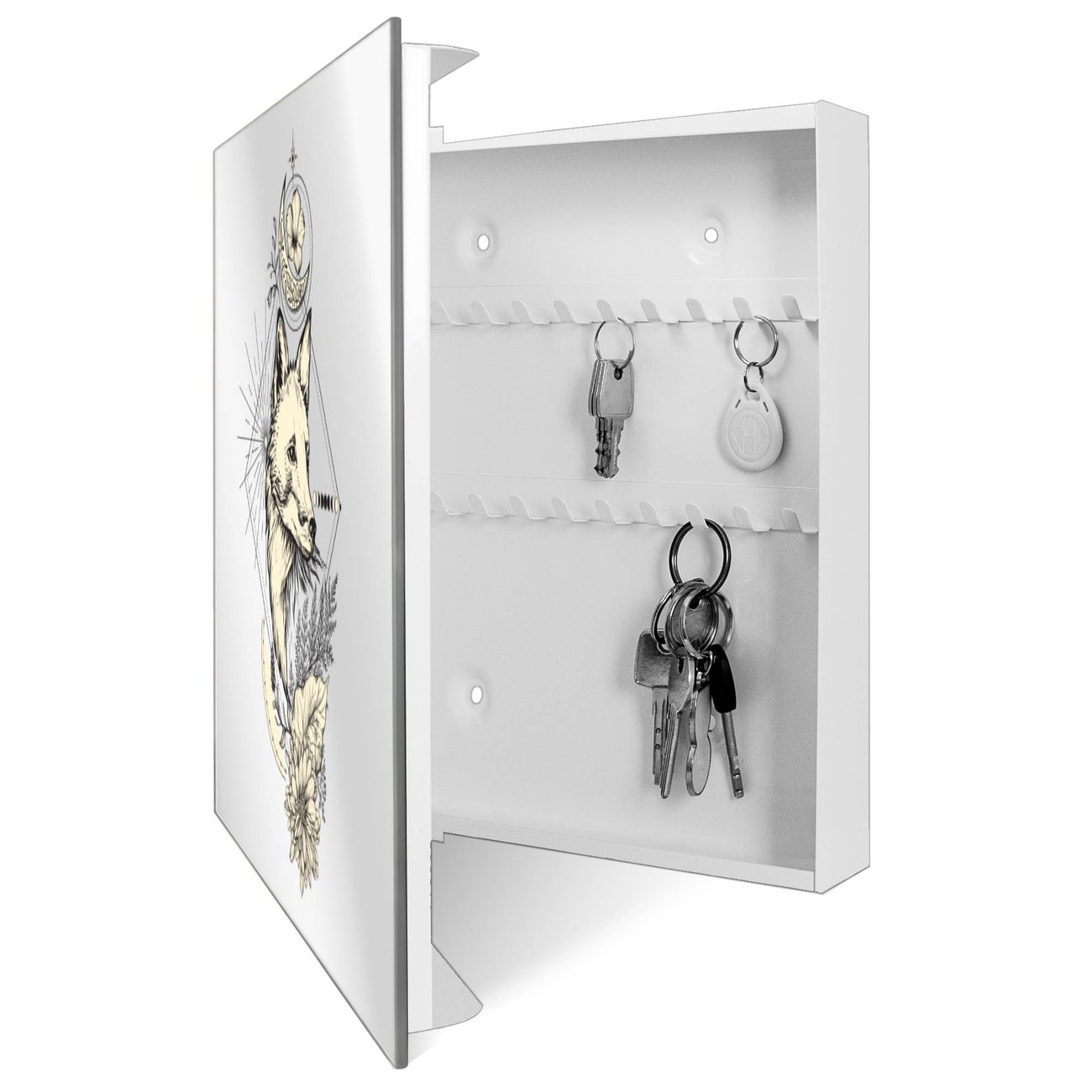 Spiegel Schlüsselkasten - Design Schlüsselbox Motiv Mystischer Fuchs