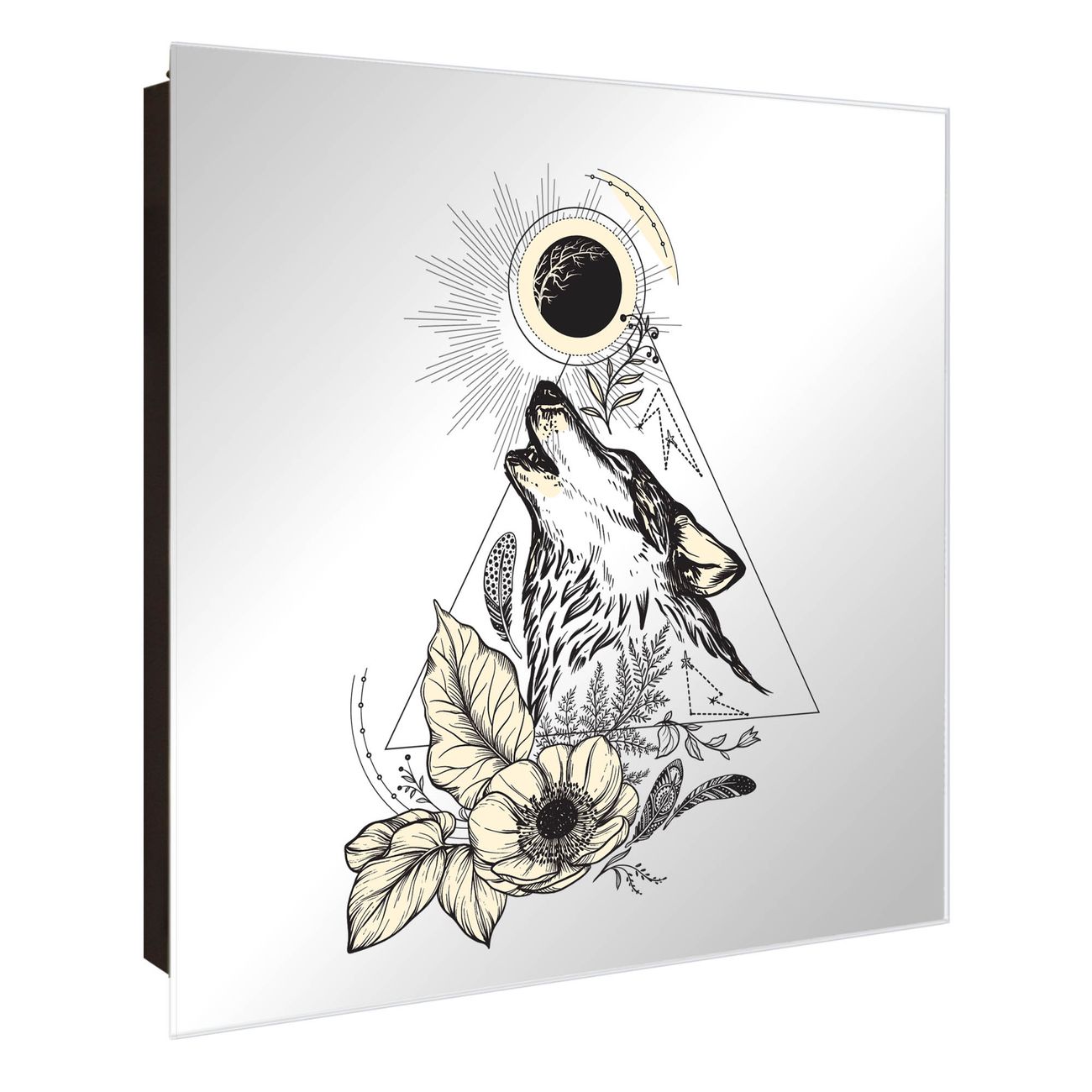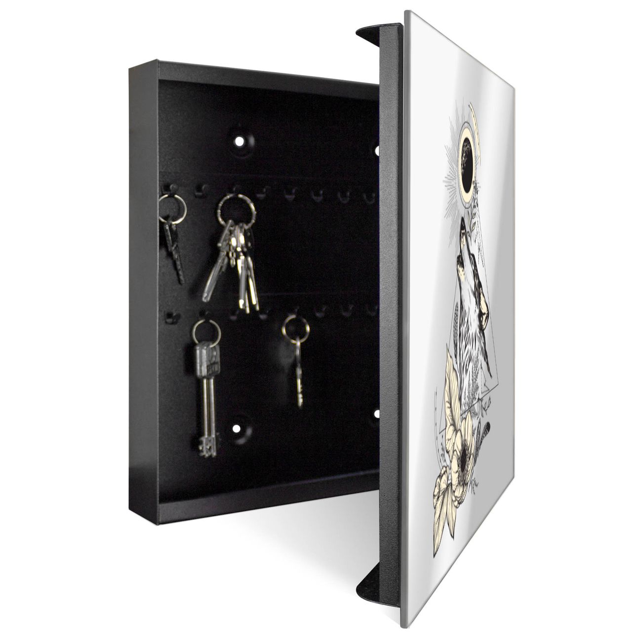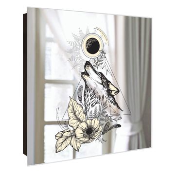 Spiegel Schlüsselkasten - Design Schlüsselbox Motiv Mystischer Wolf