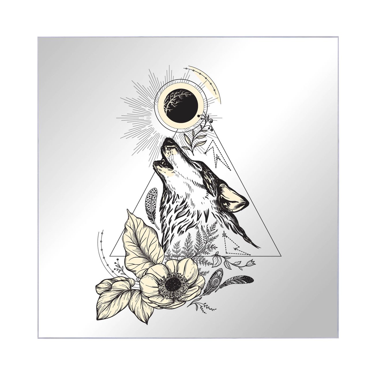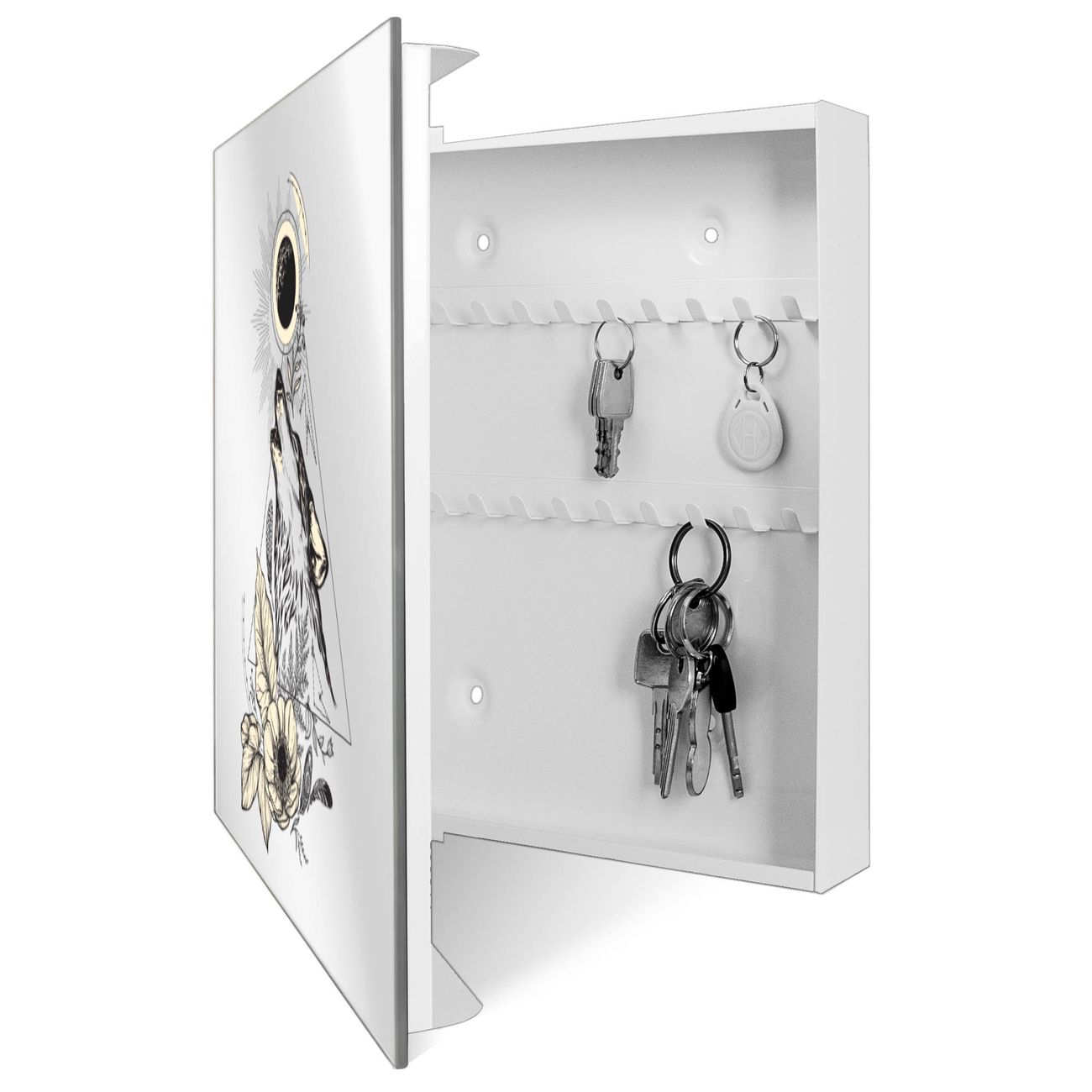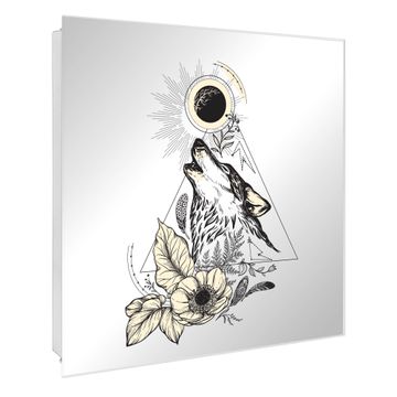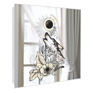 Spiegel Schlüsselkasten - Design Schlüsselbox Motiv Mystischer Wolf