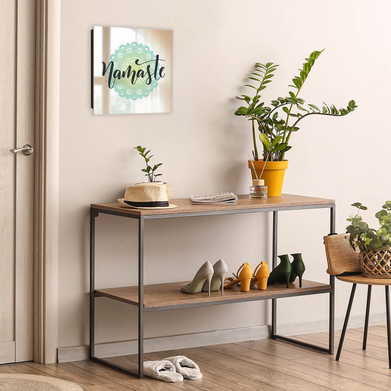 Bringe Ordnung und Stil in deinen Eingangsbereich mit dem banjado Schlüsselkasten mit Spiegel. Die elegante Spiegelfront kombiniert Funktionalität mit modernem Design und macht die Schlüsselaufbewahrung zu einem dekorativen Highlight. ✅ Spiegel Schlüsselaufbewahrung mit Motiv Motiv Namaste Mandala Der Design-Schlüsselkasten Motiv Motiv Namaste Mandala bietet Platz für bis zu 50 Schlüssel, die auf 5 stabilen Reihen mit je 10 Haken übersichtlich verstaut werden. Mit seinen kompakten Maßen von 30 x 30 x 5 cm passt die Schlüsselbox perfekt auch in kleinere Räume. Der schwarz lackierte Stahlkorpus mit rechts angeschlagenem Türscharnier harmoniert mit der Spiegelfront und fügt sich nahtlos in jedes Wohnambiente ein. Ob als Schlüsselorganizer für Zuhause oder als praktische Lösung für Büros, Praxen und Gewerbe, der banjado Schlüsselkasten sorgt für Ordnung und Übersicht. Die Spiegelfront verleiht dem Eingangsbereich zusätzliche Funktionalität und lässt Räume optisch größer wirken. Die Schlüsselbox Motiv Motiv Namaste Mandala zur Wandmontage wird inklusive Befestigungsmaterial geliefert und ist schnell angebracht. So hast du deine Schlüssel jederzeit griffbereit und zugleich stilvoll verstaut. Mit diesem banjado Schlüsselkasten Motiv Motiv Namaste Mandala kombinierst du praktische Aufbewahrung mit stilvollem Wohndesign. Ob privat oder geschäftlich, die Schlüsselbox sorgt für mehr Ordnung, Übersicht und ein wohnliches Ambiente.Vorteile im Überblick