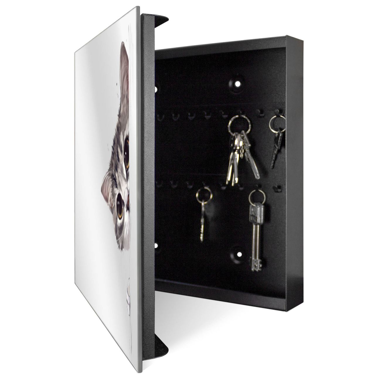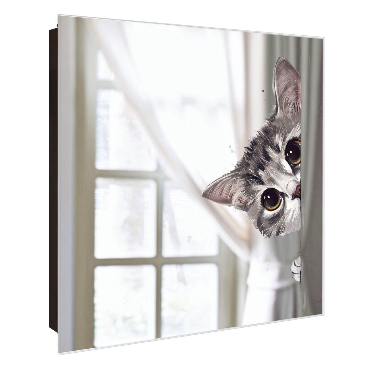 Spiegel Schlüsselkasten - Design Schlüsselbox Motiv Neugierige Katze