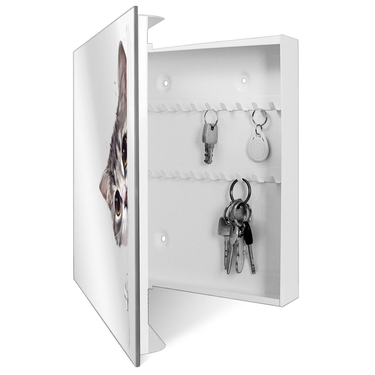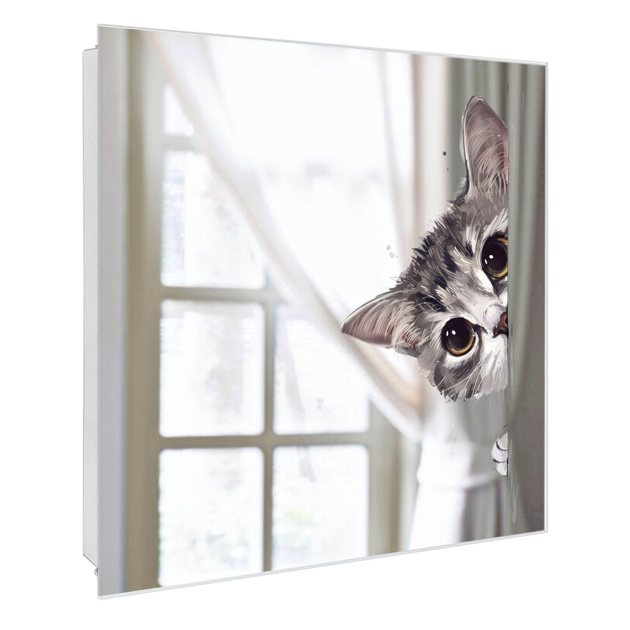 Spiegel Schlüsselkasten - Design Schlüsselbox Motiv Neugierige Katze