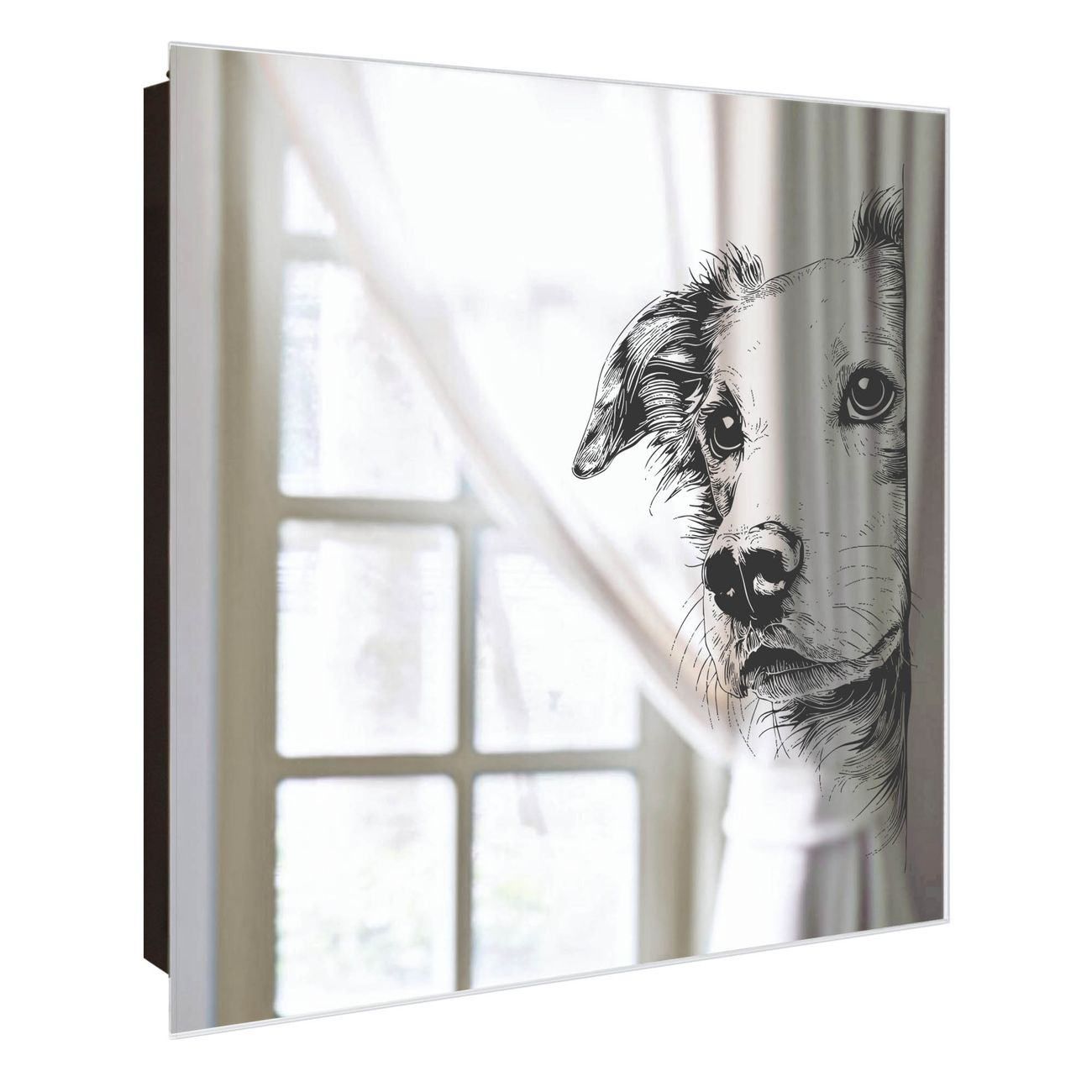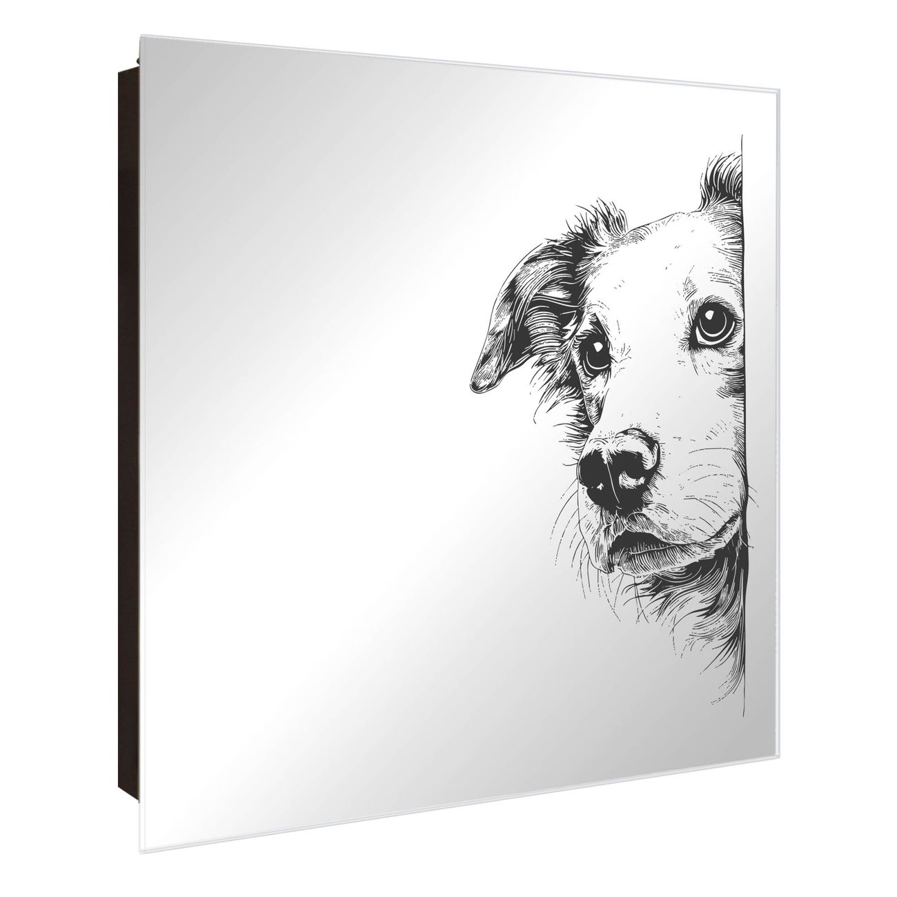 Spiegel Schlüsselkasten - Design Schlüsselbox Motiv Neugieriger Hund