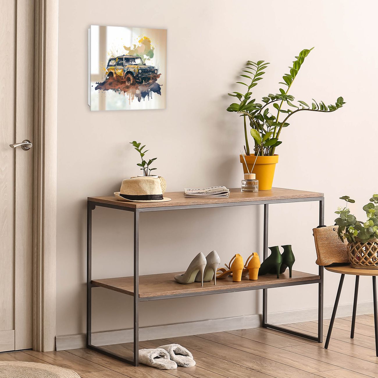 Bringe Ordnung und Stil in deinen Eingangsbereich mit dem banjado Schlüsselkasten mit Spiegel. Die elegante Spiegelfront kombiniert Funktionalität mit modernem Design und macht die Schlüsselaufbewahrung zu einem dekorativen Highlight. ✅ Spiegel Schlüsselaufbewahrung mit Motiv Motiv Offroad Abenteuer Der Design-Schlüsselkasten Motiv Motiv Offroad Abenteuer bietet Platz für bis zu 50 Schlüssel, die auf 5 stabilen Reihen mit je 10 Haken übersichtlich verstaut werden. Mit seinen kompakten Maßen von 30 x 30 x 5 cm passt die Schlüsselbox perfekt auch in kleinere Räume. Der weiß lackierte Stahlkorpus mit rechts angeschlagenem Türscharnier harmoniert mit der Spiegelfront und fügt sich nahtlos in jedes Wohnambiente ein. Ob als Schlüsselorganizer für Zuhause oder als praktische Lösung für Büros, Praxen und Gewerbe, der banjado Schlüsselkasten sorgt für Ordnung und Übersicht. Die Spiegelfront verleiht dem Eingangsbereich zusätzliche Funktionalität und lässt Räume optisch größer wirken. Die Schlüsselbox Motiv Motiv Offroad Abenteuer zur Wandmontage wird inklusive Befestigungsmaterial geliefert und ist schnell angebracht. So hast du deine Schlüssel jederzeit griffbereit und zugleich stilvoll verstaut. Mit diesem banjado Schlüsselkasten Motiv Motiv Offroad Abenteuer kombinierst du praktische Aufbewahrung mit stilvollem Wohndesign. Ob privat oder geschäftlich, die Schlüsselbox sorgt für mehr Ordnung, Übersicht und ein wohnliches Ambiente.Vorteile im Überblick