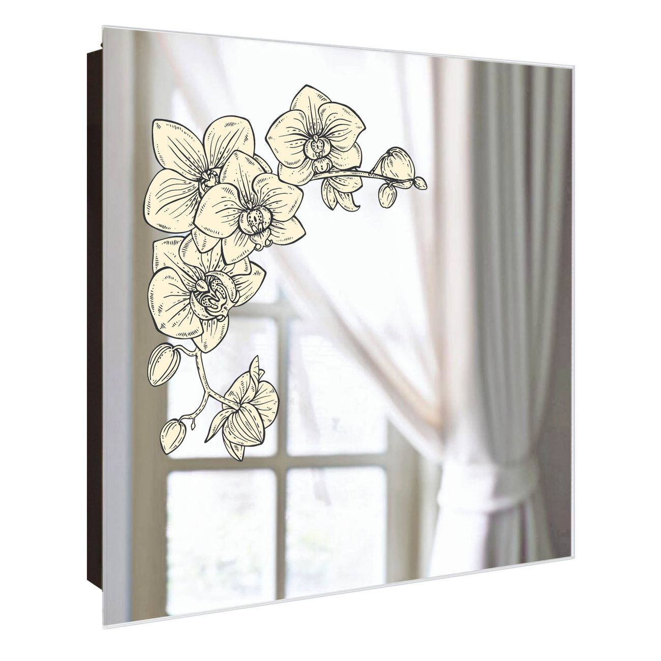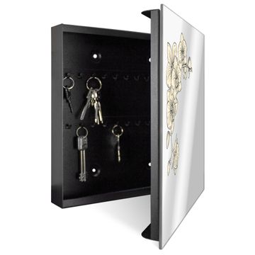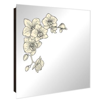 Spiegel Schlüsselkasten - Design Schlüsselbox Motiv Orchideenzeichnung