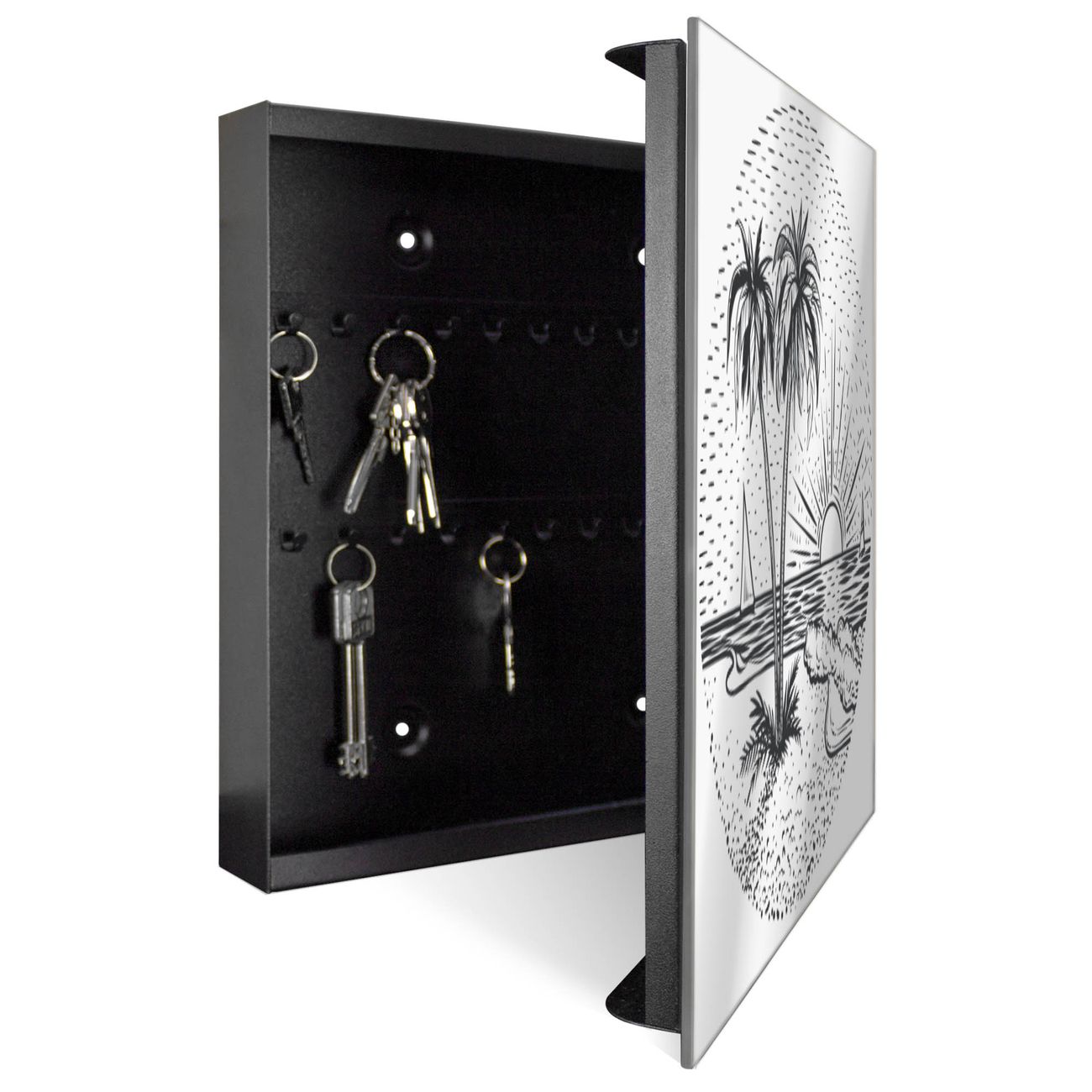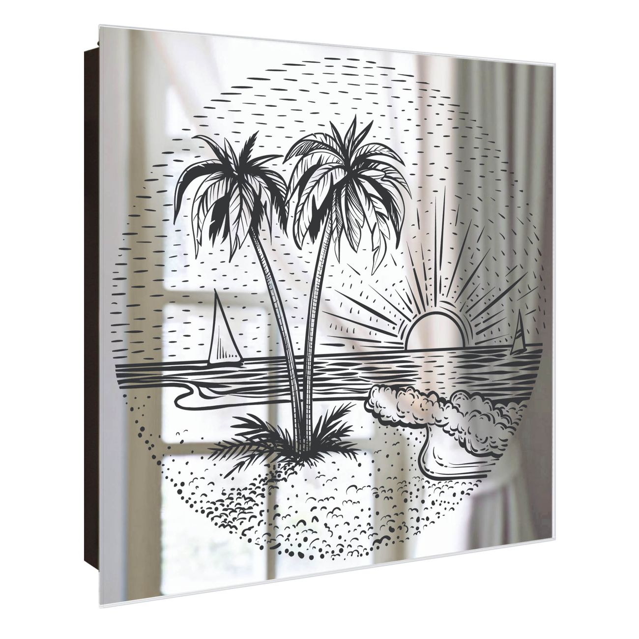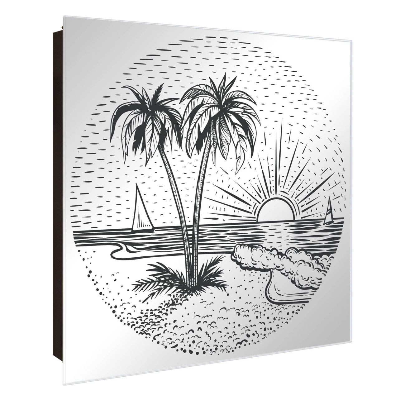 Spiegel Schlüsselkasten - Design Schlüsselbox Motiv Palmenstrand 2