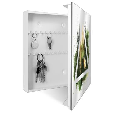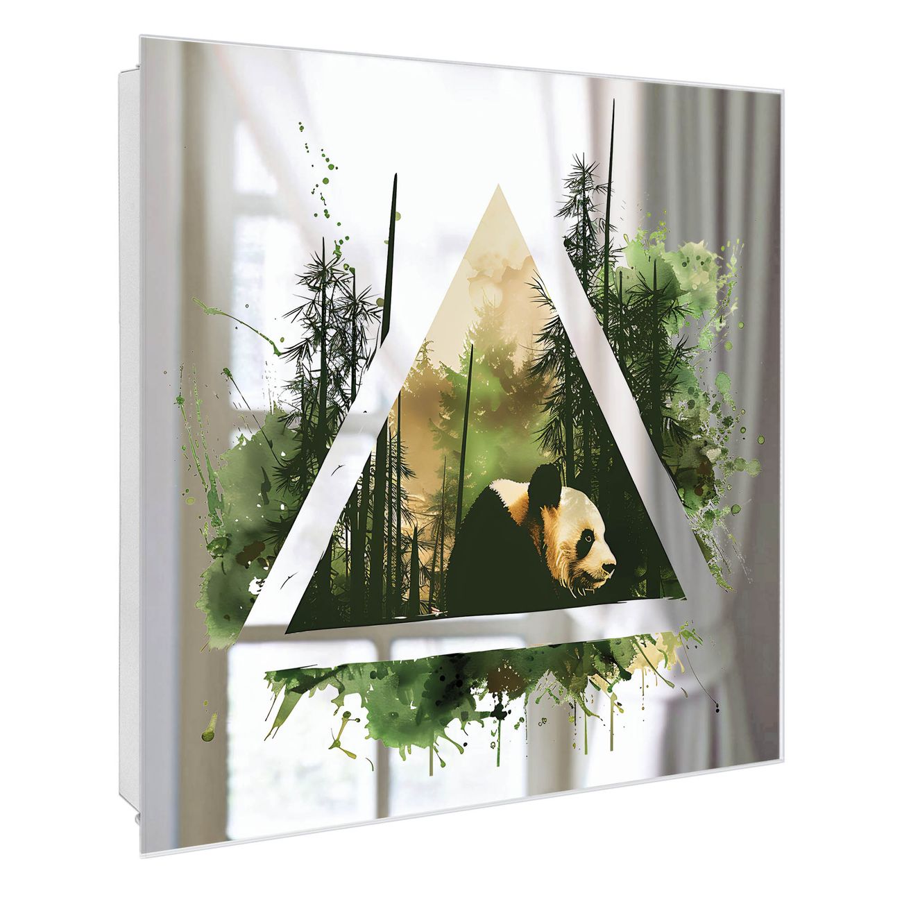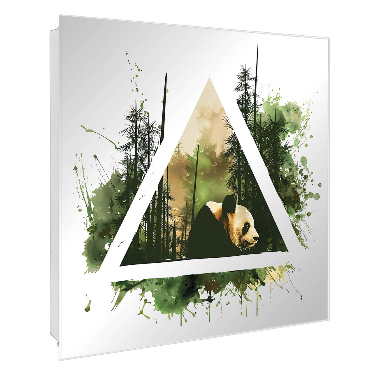 Spiegel Schlüsselkasten - Design Schlüsselbox Motiv Panda im Wald Dreieck