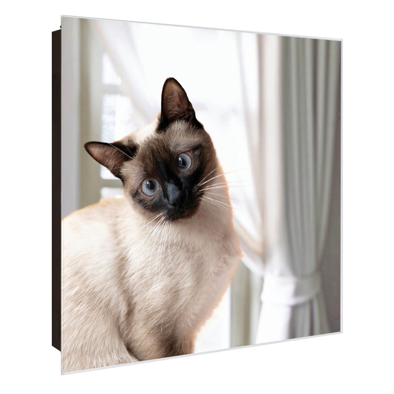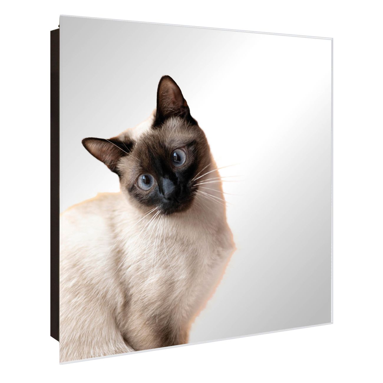 Spiegel Schlüsselkasten - Design Schlüsselbox Motiv Porträt einer Siamkatze