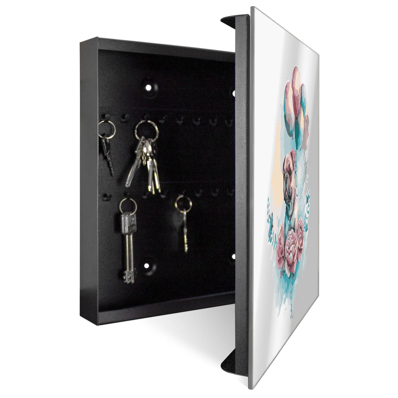 Spiegel Schlüsselkasten - Design Schlüsselbox Motiv Pudeliges Blumenglück
