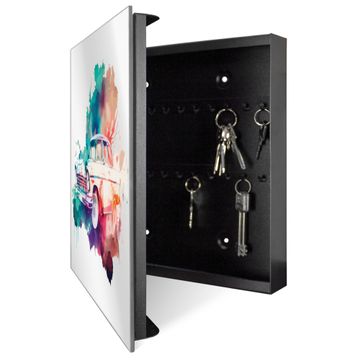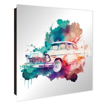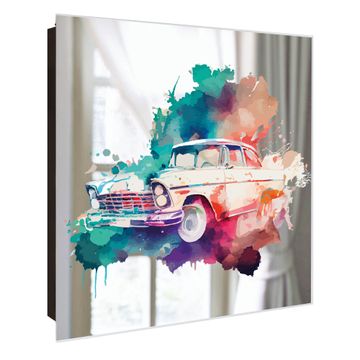 Spiegel Schlüsselkasten - Design Schlüsselbox Motiv Retro-Auto in Aquarell