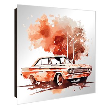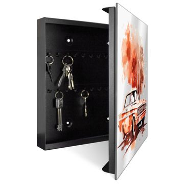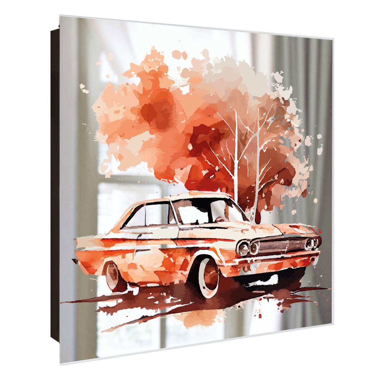 Spiegel Schlüsselkasten - Design Schlüsselbox Motiv Retro-Fahrzeug in der Landschaft