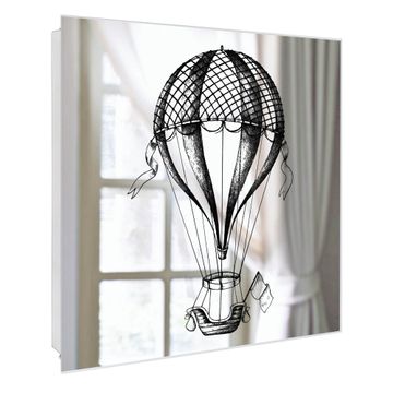 Spiegel Schlüsselkasten - Design Schlüsselbox Motiv Retro Heißluftballon