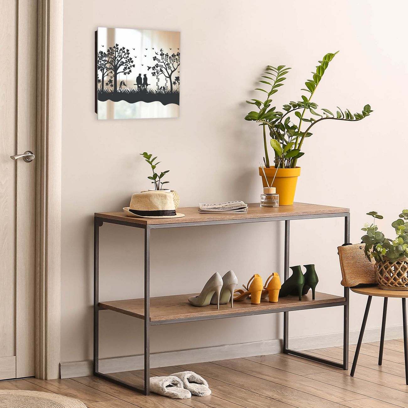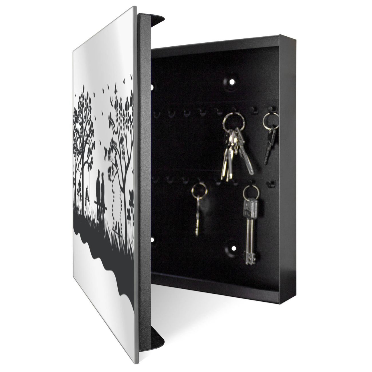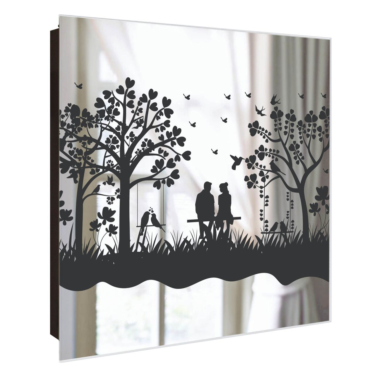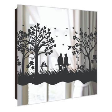 Spiegel Schlüsselkasten - Design Schlüsselbox Motiv Romantische Silhouette im Park