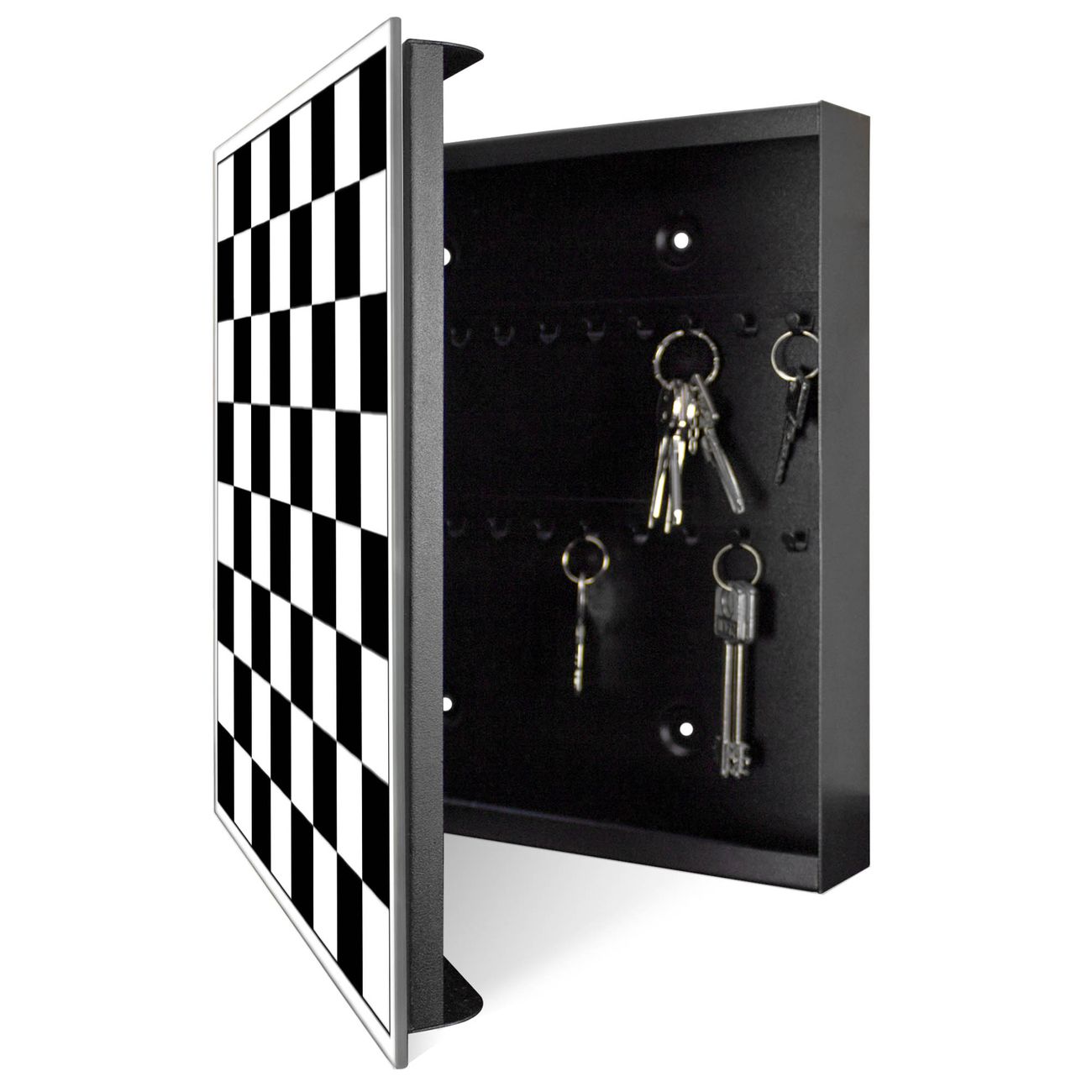 Spiegel Schlüsselkasten - Design Schlüsselbox Motiv Schachbrettmuster
