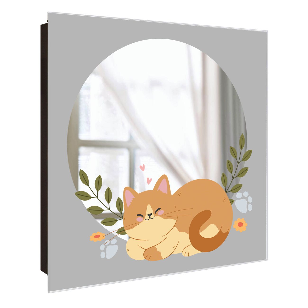 Spiegel Schlüsselkasten - Design Schlüsselbox Motiv Schlafende Katze im Garten