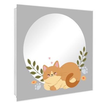 Spiegel Schlüsselkasten - Design Schlüsselbox Motiv Schlafende Katze im Garten