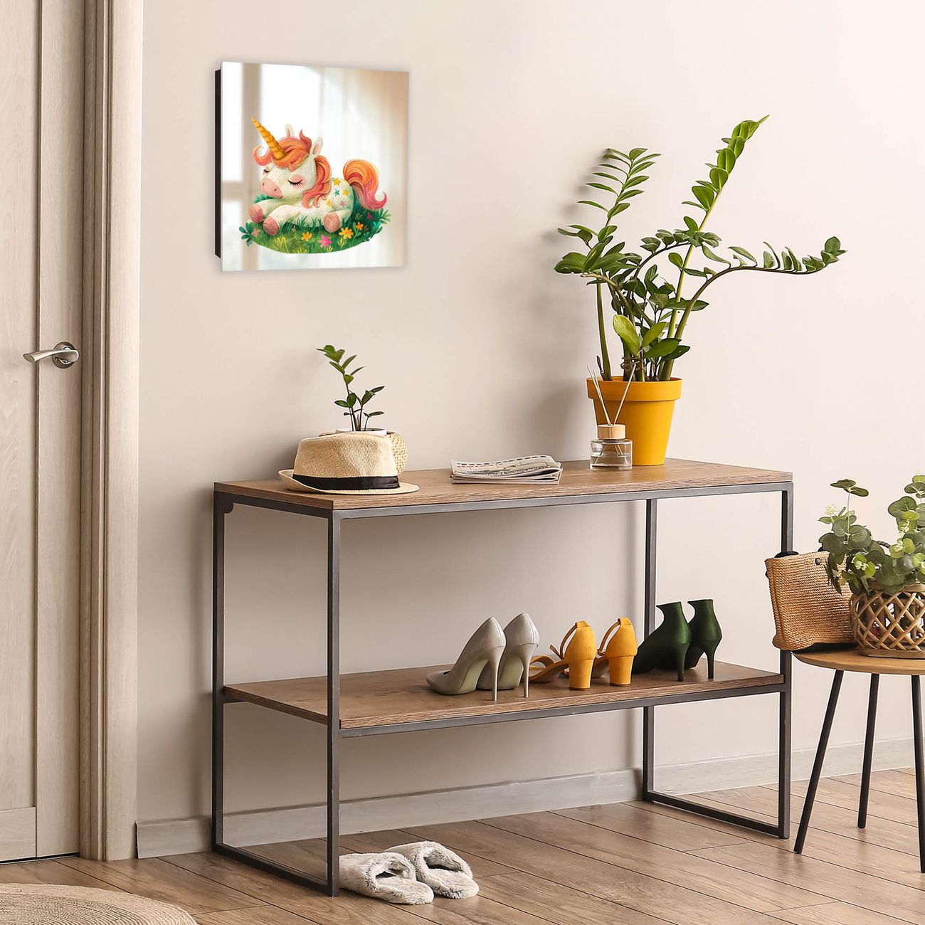 Bringe Ordnung und Stil in deinen Eingangsbereich mit dem banjado Schlüsselkasten mit Spiegel. Die elegante Spiegelfront kombiniert Funktionalität mit modernem Design und macht die Schlüsselaufbewahrung zu einem dekorativen Highlight. ✅ Spiegel Schlüsselaufbewahrung mit Motiv Motiv Schlafendes Einhorn Der Design-Schlüsselkasten Motiv Motiv Schlafendes Einhorn bietet Platz für bis zu 50 Schlüssel, die auf 5 stabilen Reihen mit je 10 Haken übersichtlich verstaut werden. Mit seinen kompakten Maßen von 30 x 30 x 5 cm passt die Schlüsselbox perfekt auch in kleinere Räume. Der schwarz lackierte Stahlkorpus mit rechts angeschlagenem Türscharnier harmoniert mit der Spiegelfront und fügt sich nahtlos in jedes Wohnambiente ein. Ob als Schlüsselorganizer für Zuhause oder als praktische Lösung für Büros, Praxen und Gewerbe, der banjado Schlüsselkasten sorgt für Ordnung und Übersicht. Die Spiegelfront verleiht dem Eingangsbereich zusätzliche Funktionalität und lässt Räume optisch größer wirken. Die Schlüsselbox Motiv Motiv Schlafendes Einhorn zur Wandmontage wird inklusive Befestigungsmaterial geliefert und ist schnell angebracht. So hast du deine Schlüssel jederzeit griffbereit und zugleich stilvoll verstaut. Mit diesem banjado Schlüsselkasten Motiv Motiv Schlafendes Einhorn kombinierst du praktische Aufbewahrung mit stilvollem Wohndesign. Ob privat oder geschäftlich, die Schlüsselbox sorgt für mehr Ordnung, Übersicht und ein wohnliches Ambiente.Vorteile im Überblick