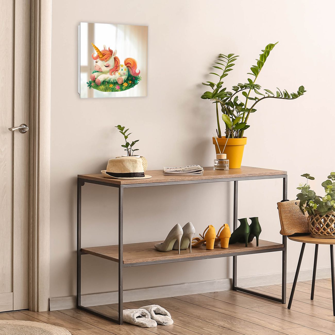 Bringe Ordnung und Stil in deinen Eingangsbereich mit dem banjado Schlüsselkasten mit Spiegel. Die elegante Spiegelfront kombiniert Funktionalität mit modernem Design und macht die Schlüsselaufbewahrung zu einem dekorativen Highlight. ✅ Spiegel Schlüsselaufbewahrung mit Motiv Motiv Schlafendes Einhorn Der Design-Schlüsselkasten Motiv Motiv Schlafendes Einhorn bietet Platz für bis zu 50 Schlüssel, die auf 5 stabilen Reihen mit je 10 Haken übersichtlich verstaut werden. Mit seinen kompakten Maßen von 30 x 30 x 5 cm passt die Schlüsselbox perfekt auch in kleinere Räume. Der weiß lackierte Stahlkorpus mit rechts angeschlagenem Türscharnier harmoniert mit der Spiegelfront und fügt sich nahtlos in jedes Wohnambiente ein. Ob als Schlüsselorganizer für Zuhause oder als praktische Lösung für Büros, Praxen und Gewerbe, der banjado Schlüsselkasten sorgt für Ordnung und Übersicht. Die Spiegelfront verleiht dem Eingangsbereich zusätzliche Funktionalität und lässt Räume optisch größer wirken. Die Schlüsselbox Motiv Motiv Schlafendes Einhorn zur Wandmontage wird inklusive Befestigungsmaterial geliefert und ist schnell angebracht. So hast du deine Schlüssel jederzeit griffbereit und zugleich stilvoll verstaut. Mit diesem banjado Schlüsselkasten Motiv Motiv Schlafendes Einhorn kombinierst du praktische Aufbewahrung mit stilvollem Wohndesign. Ob privat oder geschäftlich, die Schlüsselbox sorgt für mehr Ordnung, Übersicht und ein wohnliches Ambiente.Vorteile im Überblick