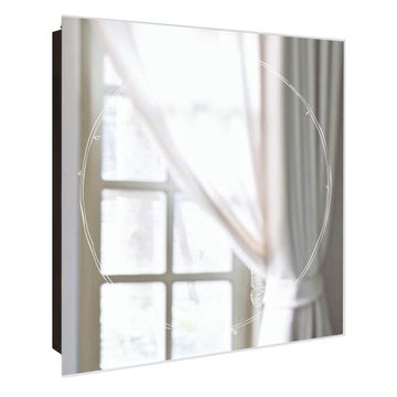 Bringe Ordnung und Stil in deinen Eingangsbereich mit dem banjado Schlüsselkasten mit Spiegel. Die elegante Spiegelfront kombiniert Funktionalität mit modernem Design und macht die Schlüsselaufbewahrung zu einem dekorativen Highlight. ✅ Spiegel Schlüsselaufbewahrung mit Motiv Motiv Schmetterlingskranz Der Design-Schlüsselkasten Motiv Motiv Schmetterlingskranz bietet Platz für bis zu 50 Schlüssel, die auf 5 stabilen Reihen mit je 10 Haken übersichtlich verstaut werden. Mit seinen kompakten Maßen von 30 x 30 x 5 cm passt die Schlüsselbox perfekt auch in kleinere Räume. Der schwarz lackierte Stahlkorpus mit rechts angeschlagenem Türscharnier harmoniert mit der Spiegelfront und fügt sich nahtlos in jedes Wohnambiente ein. Ob als Schlüsselorganizer für Zuhause oder als praktische Lösung für Büros, Praxen und Gewerbe, der banjado Schlüsselkasten sorgt für Ordnung und Übersicht. Die Spiegelfront verleiht dem Eingangsbereich zusätzliche Funktionalität und lässt Räume optisch größer wirken. Die Schlüsselbox Motiv Motiv Schmetterlingskranz zur Wandmontage wird inklusive Befestigungsmaterial geliefert und ist schnell angebracht. So hast du deine Schlüssel jederzeit griffbereit und zugleich stilvoll verstaut. Mit diesem banjado Schlüsselkasten Motiv Motiv Schmetterlingskranz kombinierst du praktische Aufbewahrung mit stilvollem Wohndesign. Ob privat oder geschäftlich, die Schlüsselbox sorgt für mehr Ordnung, Übersicht und ein wohnliches Ambiente.Vorteile im Überblick