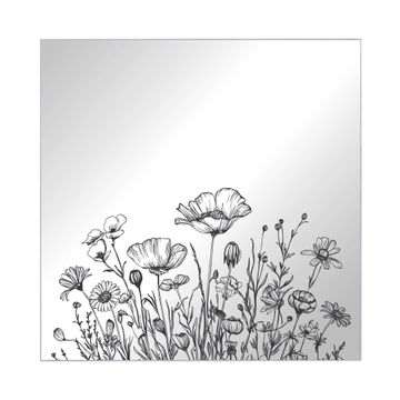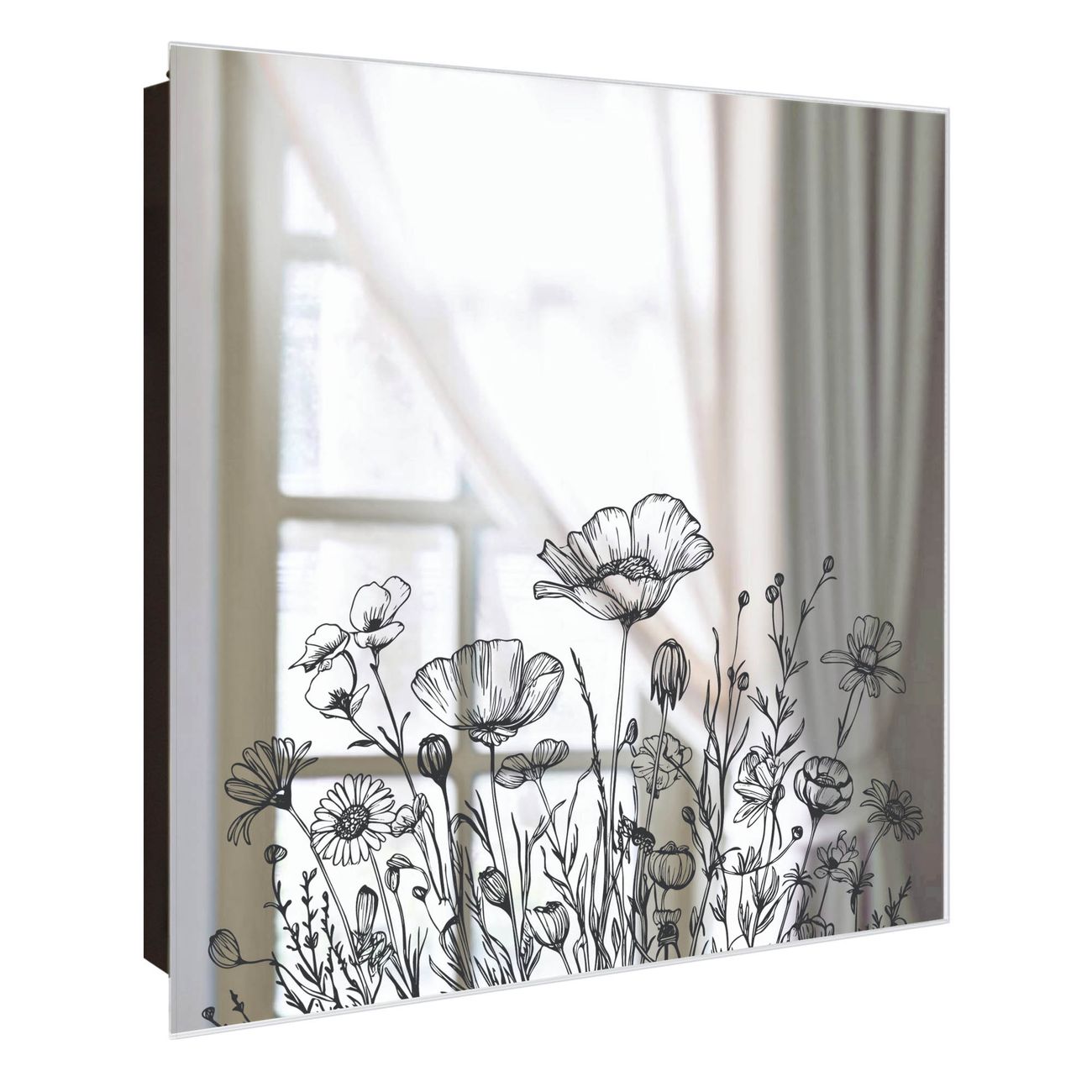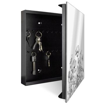 Spiegel Schlüsselkasten - Design Schlüsselbox Motiv Schwarz-Weiß Blumenzeichnung