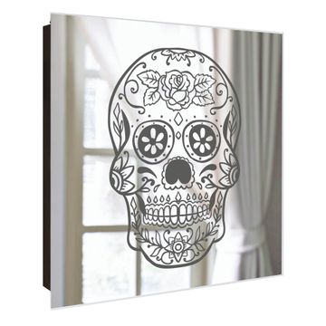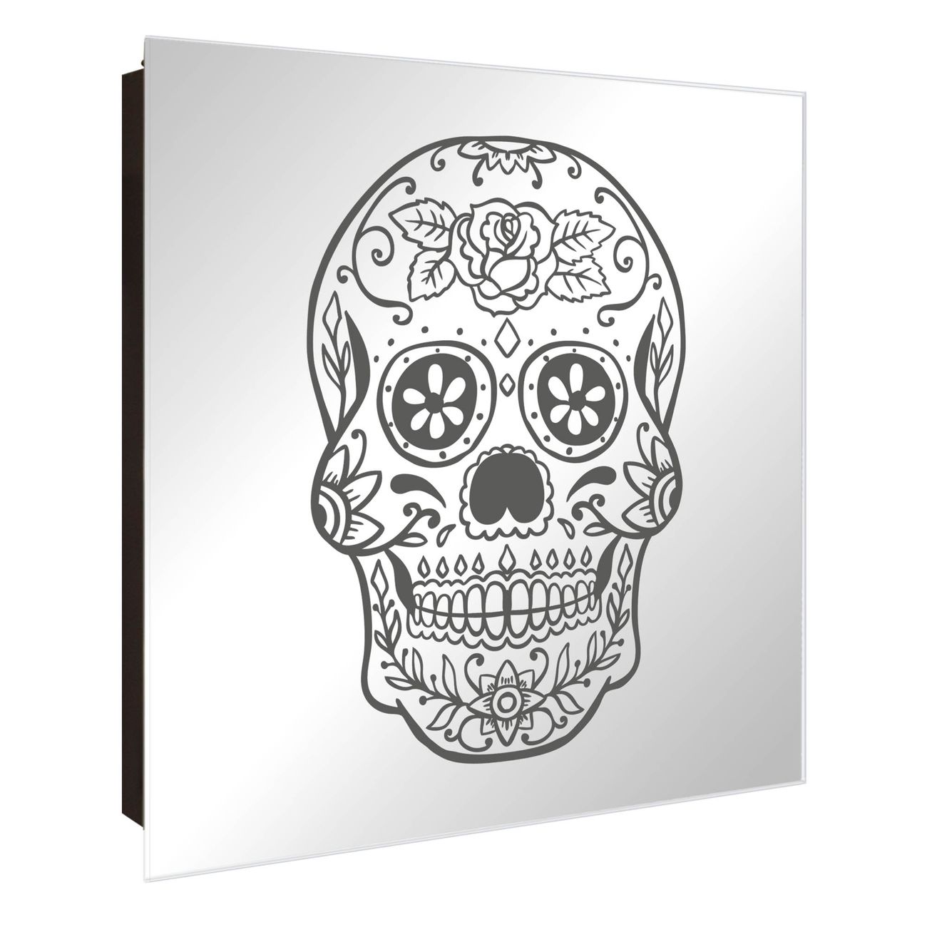Spiegel Schlüsselkasten - Design Schlüsselbox Motiv Schwarz-Weiß Sugar Skull