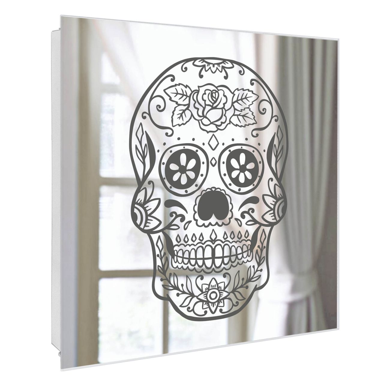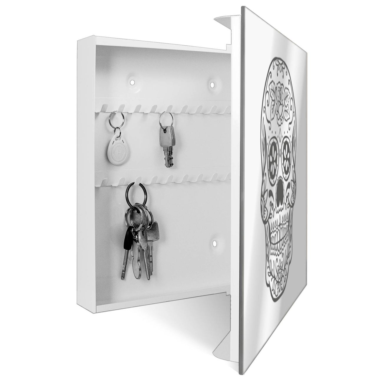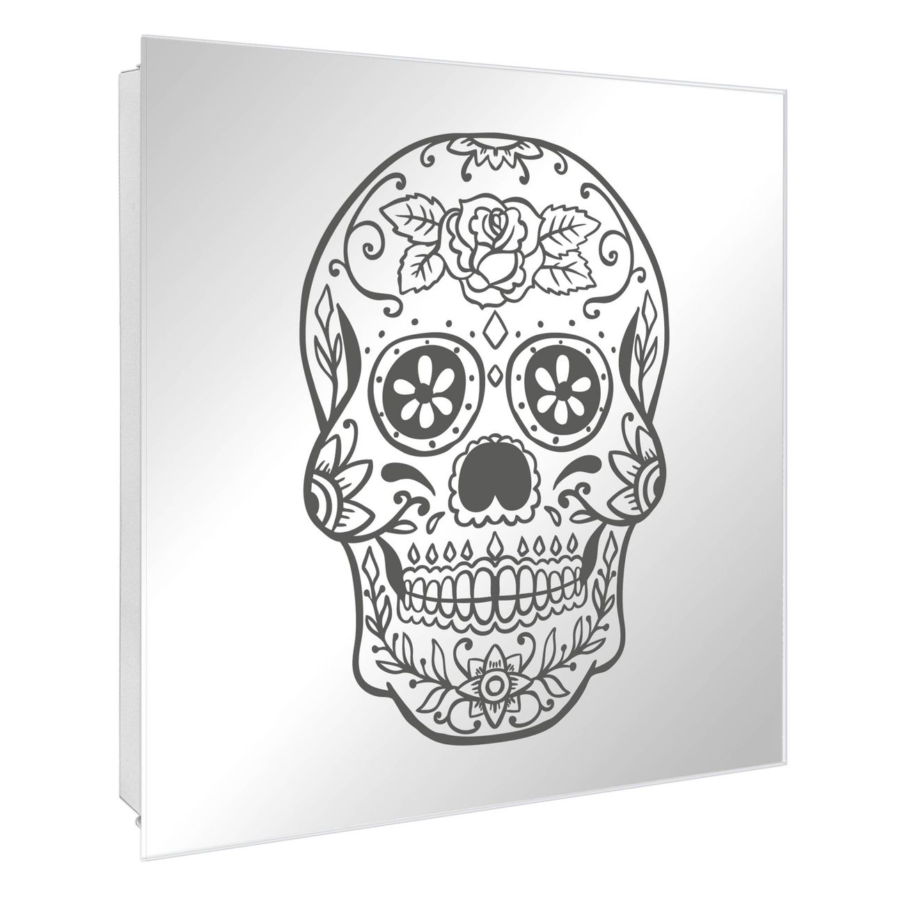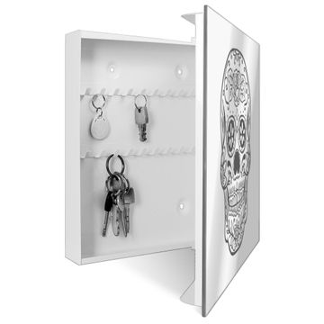 Spiegel Schlüsselkasten - Design Schlüsselbox Motiv Schwarz-Weiß Sugar Skull