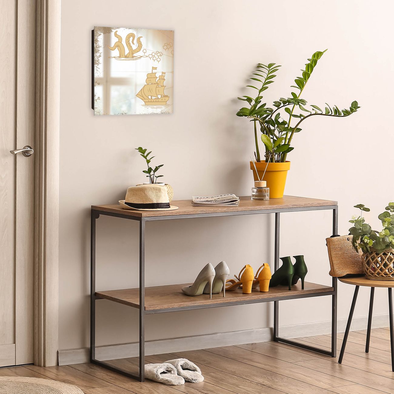 Bringe Ordnung und Stil in deinen Eingangsbereich mit dem banjado Schlüsselkasten mit Spiegel. Die elegante Spiegelfront kombiniert Funktionalität mit modernem Design und macht die Schlüsselaufbewahrung zu einem dekorativen Highlight. ✅ Spiegel Schlüsselaufbewahrung mit Motiv Motiv Seemonster und Segelschiff Der Design-Schlüsselkasten Motiv Motiv Seemonster und Segelschiff bietet Platz für bis zu 50 Schlüssel, die auf 5 stabilen Reihen mit je 10 Haken übersichtlich verstaut werden. Mit seinen kompakten Maßen von 30 x 30 x 5 cm passt die Schlüsselbox perfekt auch in kleinere Räume. Der schwarz lackierte Stahlkorpus mit rechts angeschlagenem Türscharnier harmoniert mit der Spiegelfront und fügt sich nahtlos in jedes Wohnambiente ein. Ob als Schlüsselorganizer für Zuhause oder als praktische Lösung für Büros, Praxen und Gewerbe, der banjado Schlüsselkasten sorgt für Ordnung und Übersicht. Die Spiegelfront verleiht dem Eingangsbereich zusätzliche Funktionalität und lässt Räume optisch größer wirken. Die Schlüsselbox Motiv Motiv Seemonster und Segelschiff zur Wandmontage wird inklusive Befestigungsmaterial geliefert und ist schnell angebracht. So hast du deine Schlüssel jederzeit griffbereit und zugleich stilvoll verstaut. Mit diesem banjado Schlüsselkasten Motiv Motiv Seemonster und Segelschiff kombinierst du praktische Aufbewahrung mit stilvollem Wohndesign. Ob privat oder geschäftlich, die Schlüsselbox sorgt für mehr Ordnung, Übersicht und ein wohnliches Ambiente.Vorteile im Überblick