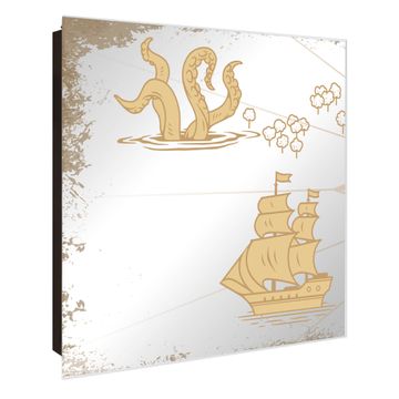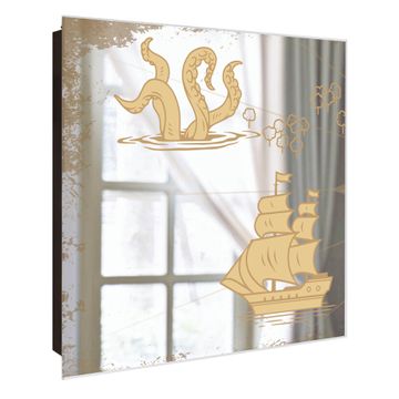 Spiegel Schlüsselkasten - Design Schlüsselbox Motiv Seemonster und Segelschiff