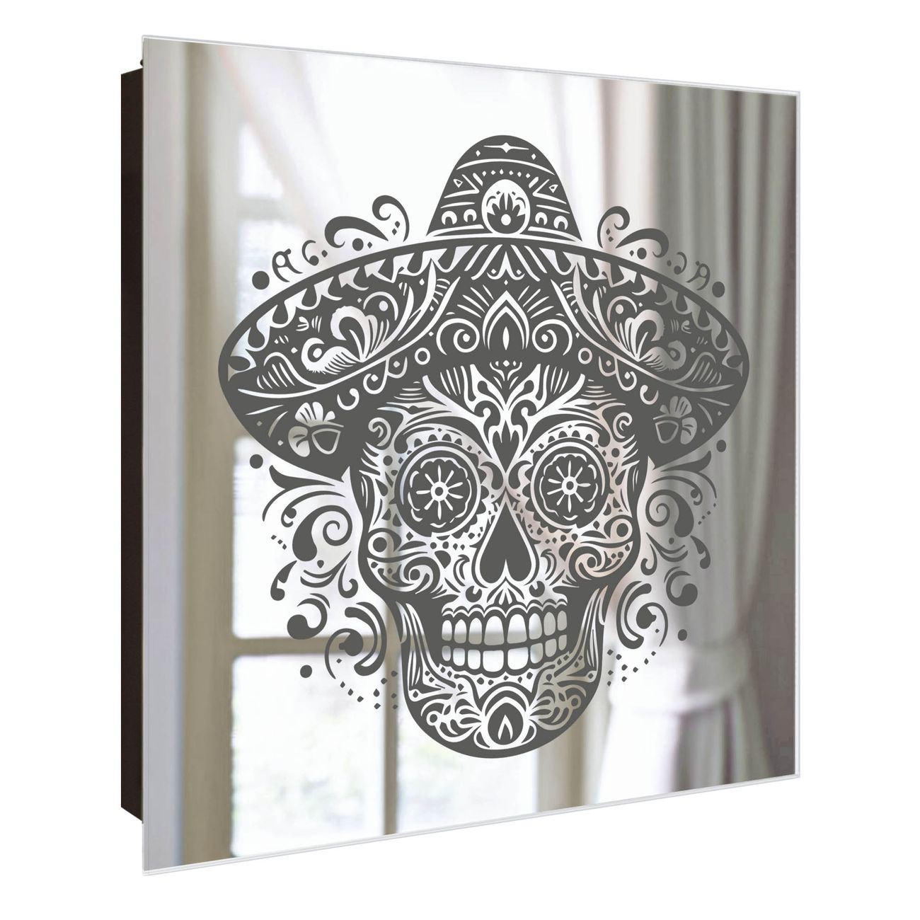 Spiegel Schlüsselkasten - Design Schlüsselbox Motiv Sombrero Totenkopf