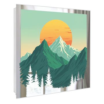 Spiegel Schlüsselkasten - Design Schlüsselbox Motiv Sonnenaufgang über den Bergen