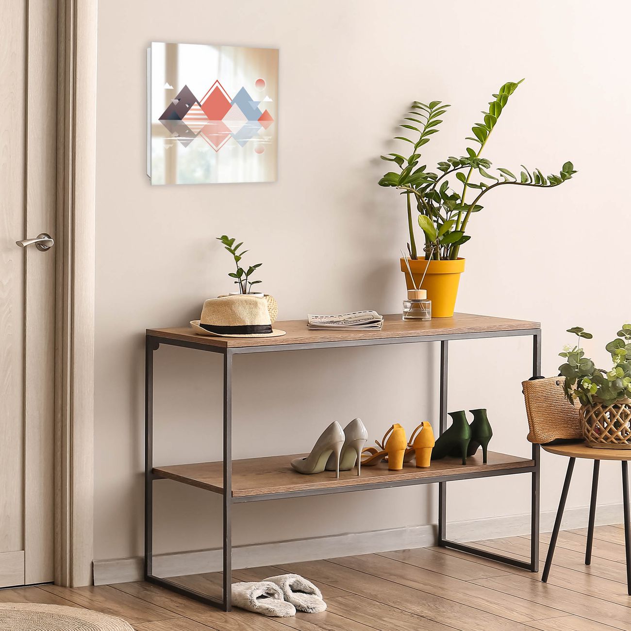 Bringe Ordnung und Stil in deinen Eingangsbereich mit dem banjado Schlüsselkasten mit Spiegel. Die elegante Spiegelfront kombiniert Funktionalität mit modernem Design und macht die Schlüsselaufbewahrung zu einem dekorativen Highlight. ✅ Spiegel Schlüsselaufbewahrung mit Motiv Motiv Spiegelnde Geometrie Der Design-Schlüsselkasten Motiv Motiv Spiegelnde Geometrie bietet Platz für bis zu 50 Schlüssel, die auf 5 stabilen Reihen mit je 10 Haken übersichtlich verstaut werden. Mit seinen kompakten Maßen von 30 x 30 x 5 cm passt die Schlüsselbox perfekt auch in kleinere Räume. Der weiß lackierte Stahlkorpus mit rechts angeschlagenem Türscharnier harmoniert mit der Spiegelfront und fügt sich nahtlos in jedes Wohnambiente ein. Ob als Schlüsselorganizer für Zuhause oder als praktische Lösung für Büros, Praxen und Gewerbe, der banjado Schlüsselkasten sorgt für Ordnung und Übersicht. Die Spiegelfront verleiht dem Eingangsbereich zusätzliche Funktionalität und lässt Räume optisch größer wirken. Die Schlüsselbox Motiv Motiv Spiegelnde Geometrie zur Wandmontage wird inklusive Befestigungsmaterial geliefert und ist schnell angebracht. So hast du deine Schlüssel jederzeit griffbereit und zugleich stilvoll verstaut. Mit diesem banjado Schlüsselkasten Motiv Motiv Spiegelnde Geometrie kombinierst du praktische Aufbewahrung mit stilvollem Wohndesign. Ob privat oder geschäftlich, die Schlüsselbox sorgt für mehr Ordnung, Übersicht und ein wohnliches Ambiente.Vorteile im Überblick