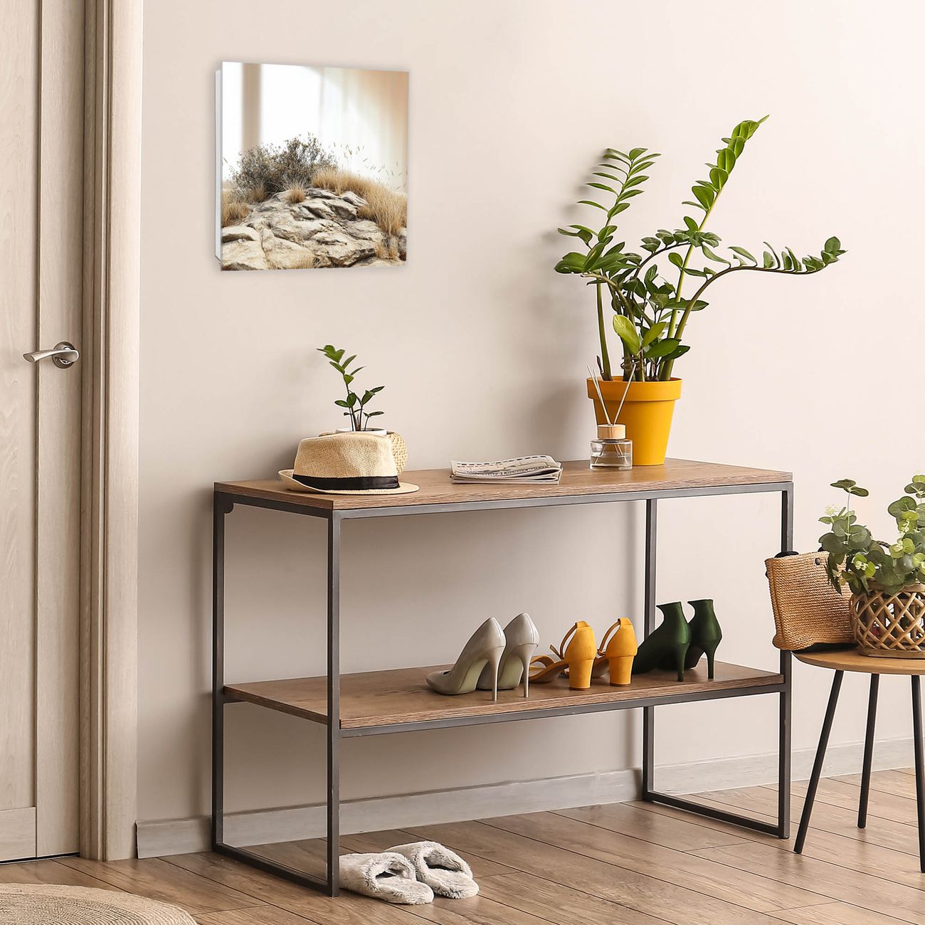 Bringe Ordnung und Stil in deinen Eingangsbereich mit dem banjado Schlüsselkasten mit Spiegel. Die elegante Spiegelfront kombiniert Funktionalität mit modernem Design und macht die Schlüsselaufbewahrung zu einem dekorativen Highlight. ✅ Spiegel Schlüsselaufbewahrung mit Motiv Motiv Steinige Landschaft Der Design-Schlüsselkasten Motiv Motiv Steinige Landschaft bietet Platz für bis zu 50 Schlüssel, die auf 5 stabilen Reihen mit je 10 Haken übersichtlich verstaut werden. Mit seinen kompakten Maßen von 30 x 30 x 5 cm passt die Schlüsselbox perfekt auch in kleinere Räume. Der weiß lackierte Stahlkorpus mit rechts angeschlagenem Türscharnier harmoniert mit der Spiegelfront und fügt sich nahtlos in jedes Wohnambiente ein. Ob als Schlüsselorganizer für Zuhause oder als praktische Lösung für Büros, Praxen und Gewerbe, der banjado Schlüsselkasten sorgt für Ordnung und Übersicht. Die Spiegelfront verleiht dem Eingangsbereich zusätzliche Funktionalität und lässt Räume optisch größer wirken. Die Schlüsselbox Motiv Motiv Steinige Landschaft zur Wandmontage wird inklusive Befestigungsmaterial geliefert und ist schnell angebracht. So hast du deine Schlüssel jederzeit griffbereit und zugleich stilvoll verstaut. Mit diesem banjado Schlüsselkasten Motiv Motiv Steinige Landschaft kombinierst du praktische Aufbewahrung mit stilvollem Wohndesign. Ob privat oder geschäftlich, die Schlüsselbox sorgt für mehr Ordnung, Übersicht und ein wohnliches Ambiente.Vorteile im Überblick