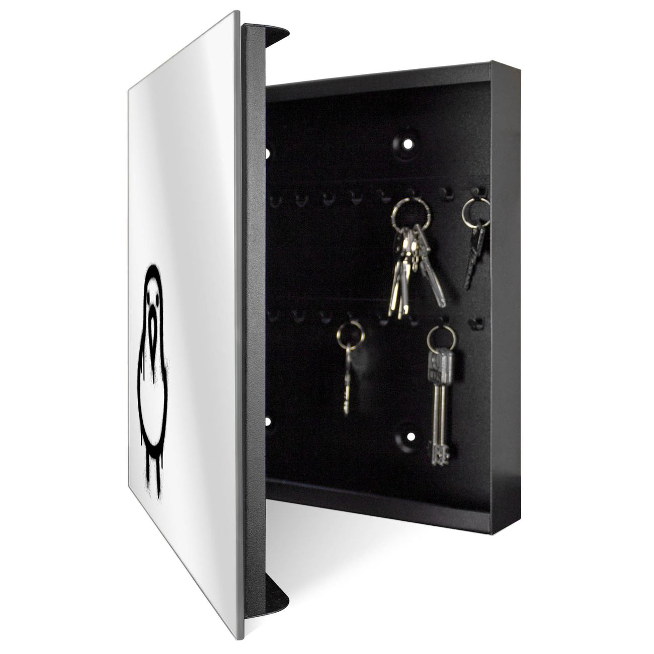 Bringe Ordnung und Stil in deinen Eingangsbereich mit dem banjado Schlüsselkasten mit Spiegel. Die elegante Spiegelfront kombiniert Funktionalität mit modernem Design und macht die Schlüsselaufbewahrung zu einem dekorativen Highlight. ✅ Spiegel Schlüsselaufbewahrung mit Motiv Motiv Street Art Vogel Der Design-Schlüsselkasten Motiv Motiv Street Art Vogel bietet Platz für bis zu 50 Schlüssel, die auf 5 stabilen Reihen mit je 10 Haken übersichtlich verstaut werden. Mit seinen kompakten Maßen von 30 x 30 x 5 cm passt die Schlüsselbox perfekt auch in kleinere Räume. Der schwarz lackierte Stahlkorpus mit rechts angeschlagenem Türscharnier harmoniert mit der Spiegelfront und fügt sich nahtlos in jedes Wohnambiente ein. Ob als Schlüsselorganizer für Zuhause oder als praktische Lösung für Büros, Praxen und Gewerbe, der banjado Schlüsselkasten sorgt für Ordnung und Übersicht. Die Spiegelfront verleiht dem Eingangsbereich zusätzliche Funktionalität und lässt Räume optisch größer wirken. Die Schlüsselbox Motiv Motiv Street Art Vogel zur Wandmontage wird inklusive Befestigungsmaterial geliefert und ist schnell angebracht. So hast du deine Schlüssel jederzeit griffbereit und zugleich stilvoll verstaut. Mit diesem banjado Schlüsselkasten Motiv Motiv Street Art Vogel kombinierst du praktische Aufbewahrung mit stilvollem Wohndesign. Ob privat oder geschäftlich, die Schlüsselbox sorgt für mehr Ordnung, Übersicht und ein wohnliches Ambiente.Vorteile im Überblick