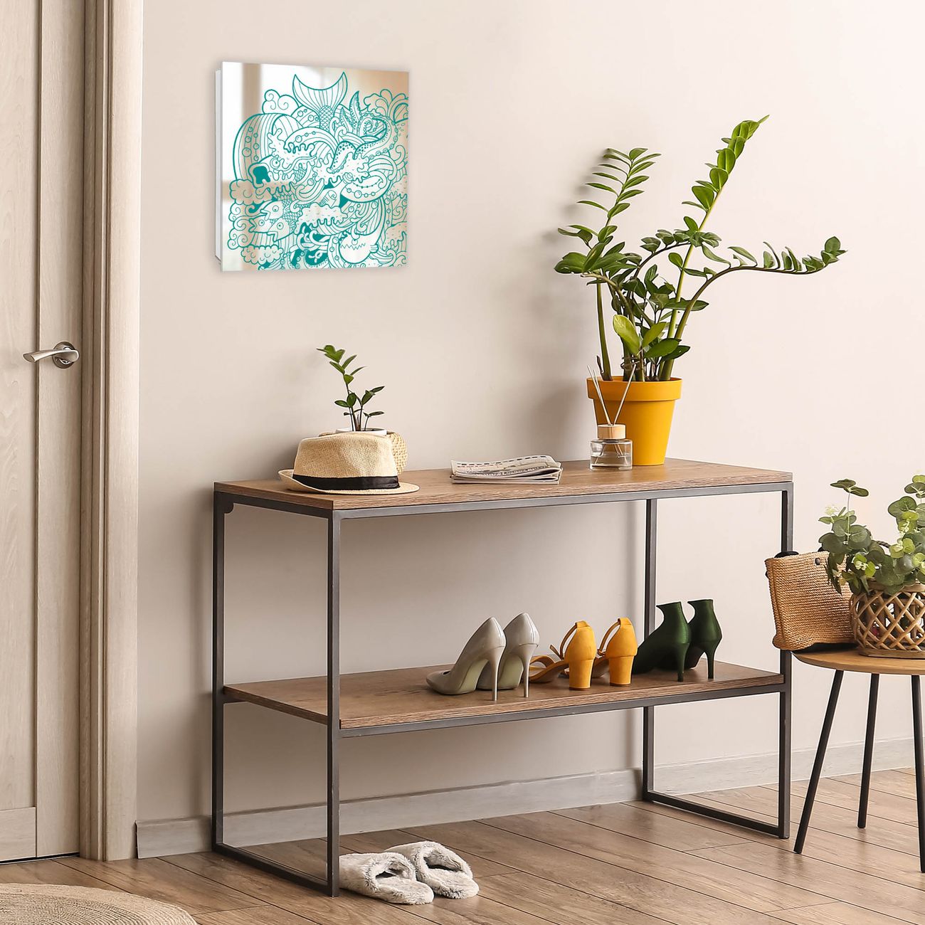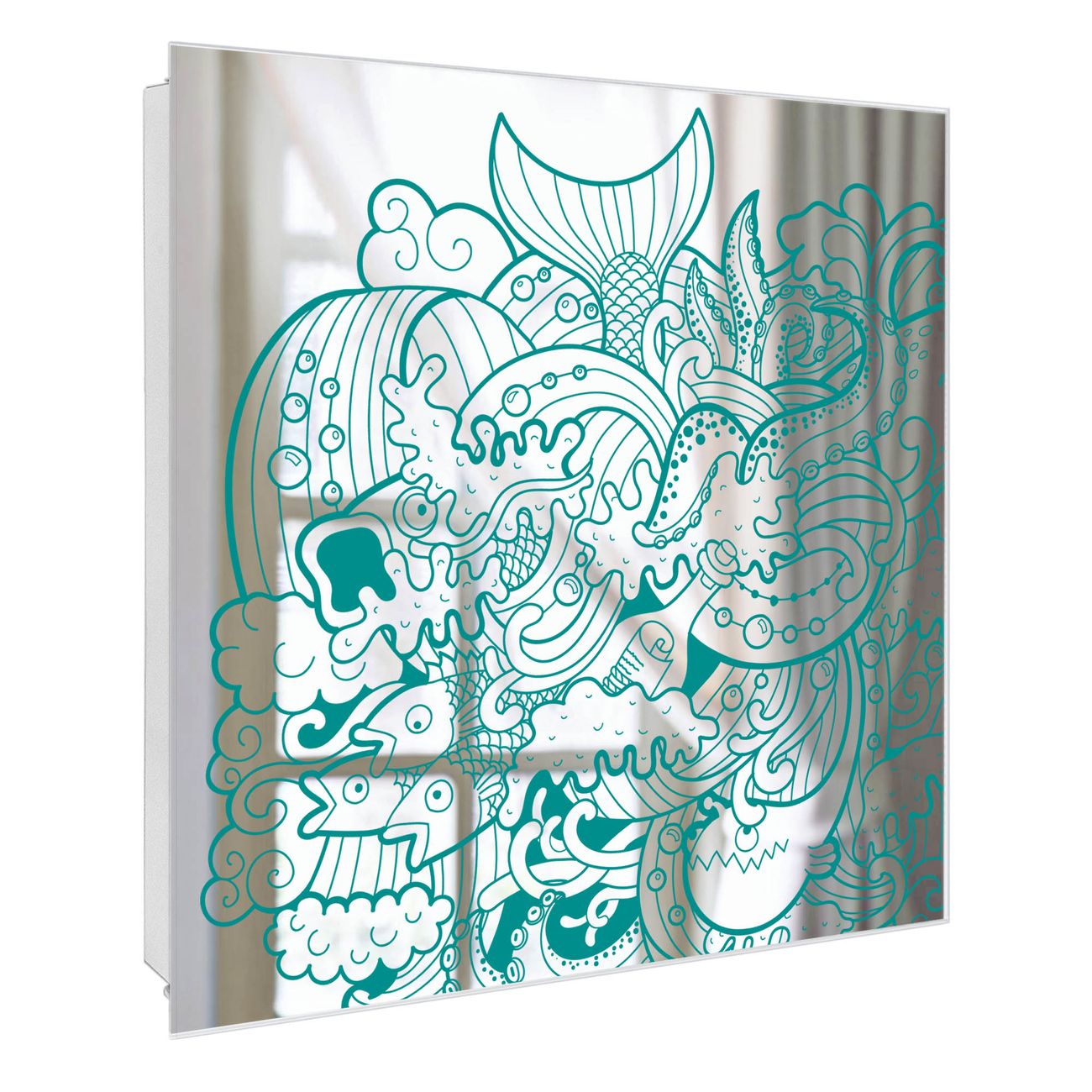 Bringe Ordnung und Stil in deinen Eingangsbereich mit dem banjado Schlüsselkasten mit Spiegel. Die elegante Spiegelfront kombiniert Funktionalität mit modernem Design und macht die Schlüsselaufbewahrung zu einem dekorativen Highlight. ✅ Spiegel Schlüsselaufbewahrung mit Motiv Motiv Tiefsee Der Design-Schlüsselkasten Motiv Motiv Tiefsee bietet Platz für bis zu 50 Schlüssel, die auf 5 stabilen Reihen mit je 10 Haken übersichtlich verstaut werden. Mit seinen kompakten Maßen von 30 x 30 x 5 cm passt die Schlüsselbox perfekt auch in kleinere Räume. Der weiß lackierte Stahlkorpus mit rechts angeschlagenem Türscharnier harmoniert mit der Spiegelfront und fügt sich nahtlos in jedes Wohnambiente ein. Ob als Schlüsselorganizer für Zuhause oder als praktische Lösung für Büros, Praxen und Gewerbe, der banjado Schlüsselkasten sorgt für Ordnung und Übersicht. Die Spiegelfront verleiht dem Eingangsbereich zusätzliche Funktionalität und lässt Räume optisch größer wirken. Die Schlüsselbox Motiv Motiv Tiefsee zur Wandmontage wird inklusive Befestigungsmaterial geliefert und ist schnell angebracht. So hast du deine Schlüssel jederzeit griffbereit und zugleich stilvoll verstaut. Mit diesem banjado Schlüsselkasten Motiv Motiv Tiefsee kombinierst du praktische Aufbewahrung mit stilvollem Wohndesign. Ob privat oder geschäftlich, die Schlüsselbox sorgt für mehr Ordnung, Übersicht und ein wohnliches Ambiente.Vorteile im Überblick