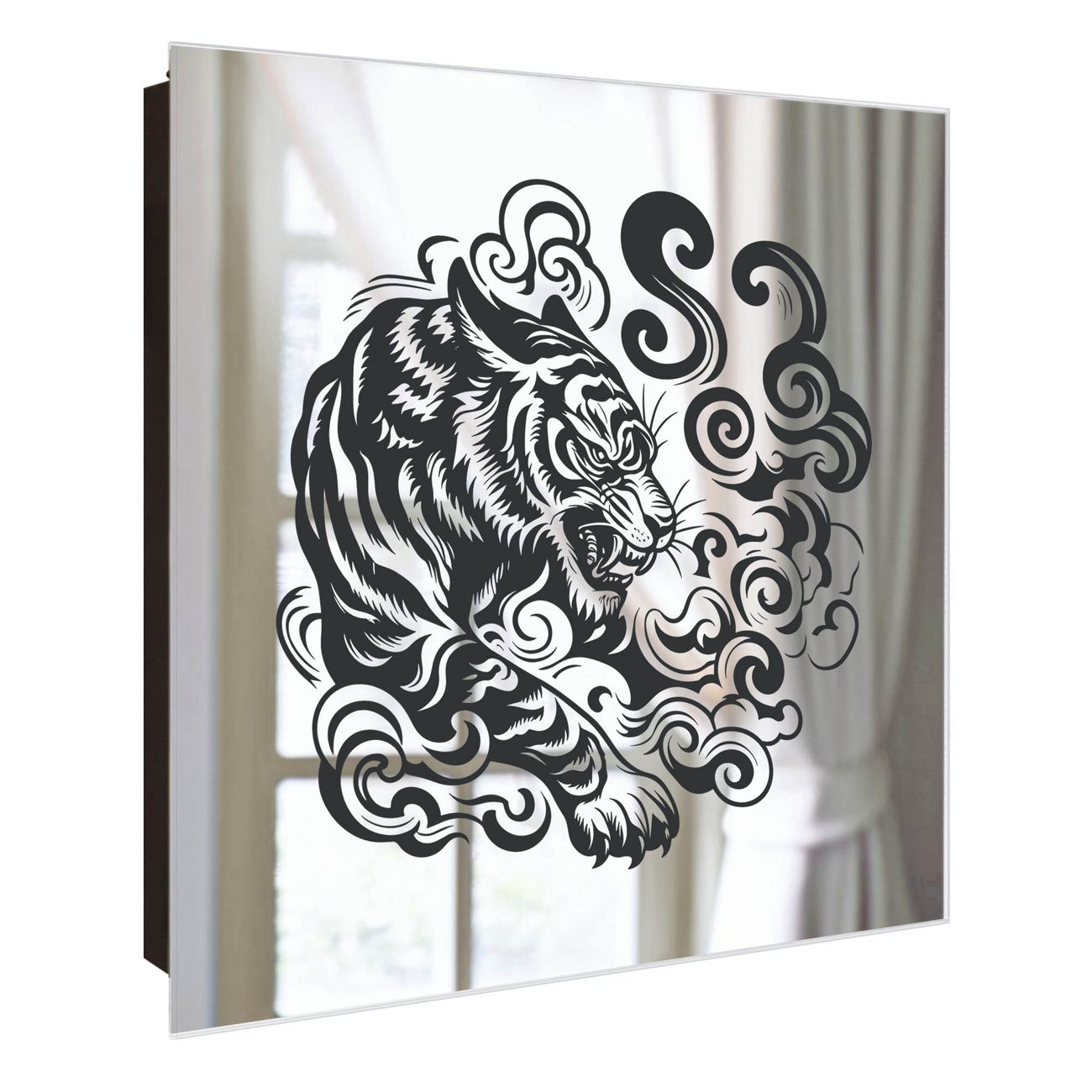 Spiegel Schlüsselkasten - Design Schlüsselbox Motiv Tiger Illustration