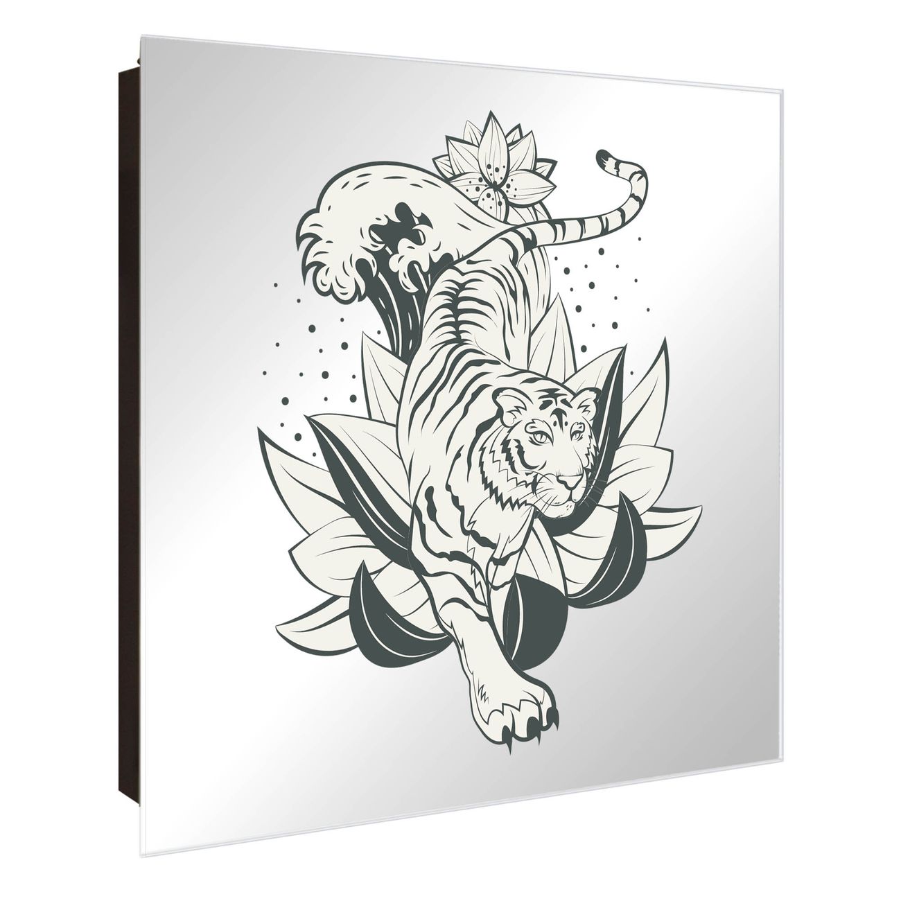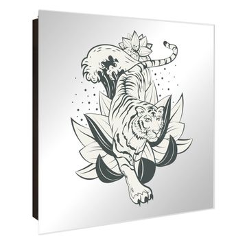 Spiegel Schlüsselkasten - Design Schlüsselbox Motiv Tiger im Blumenmeer