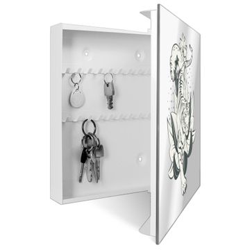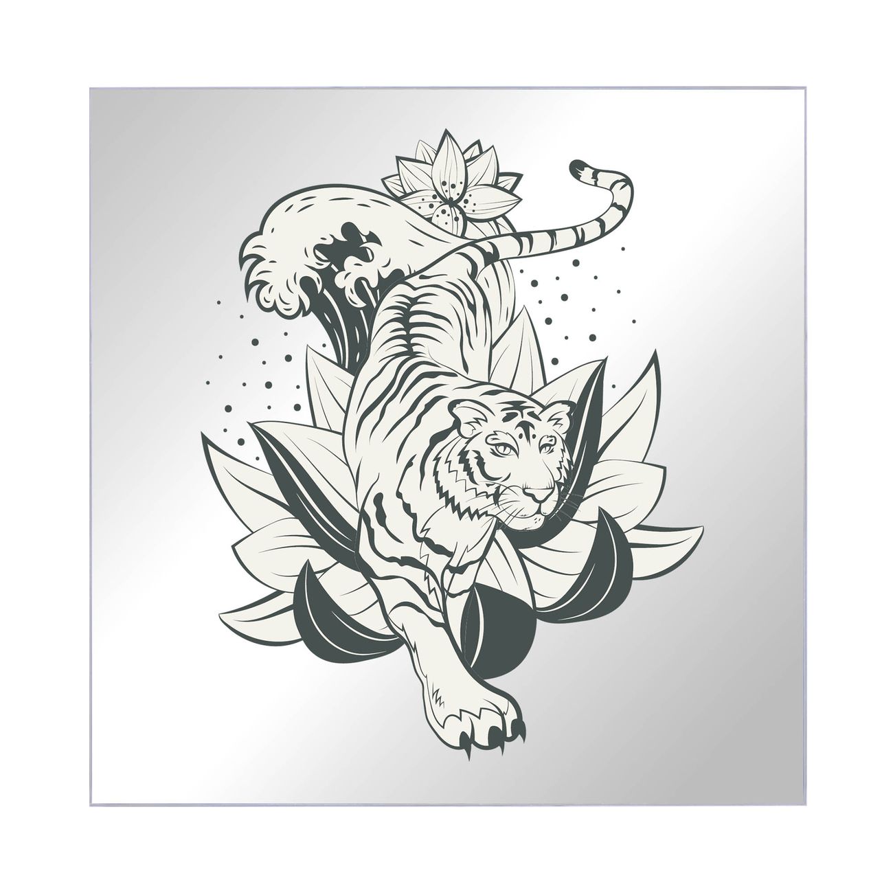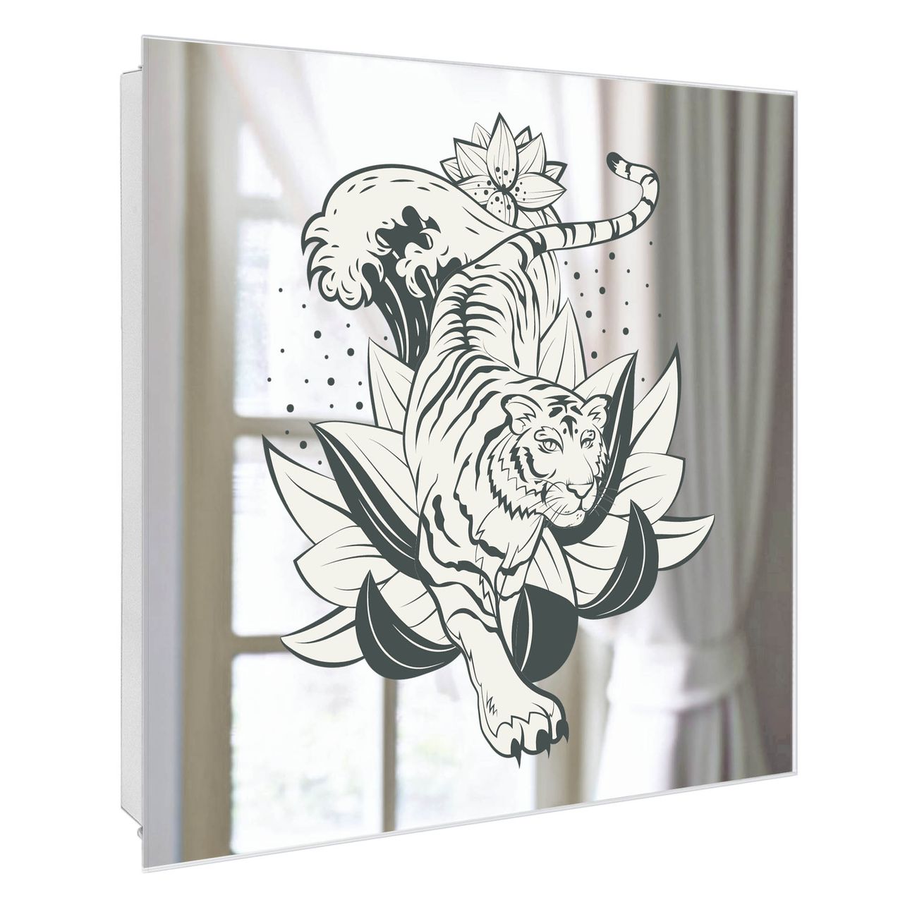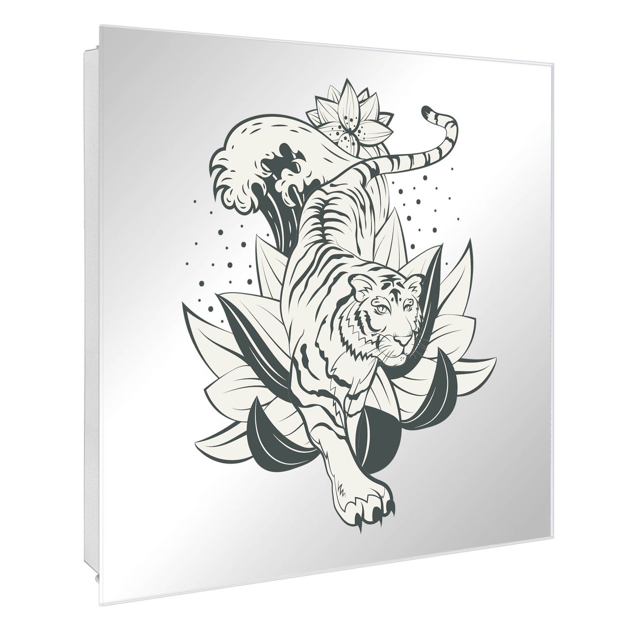 Spiegel Schlüsselkasten - Design Schlüsselbox Motiv Tiger und Lotusblüte