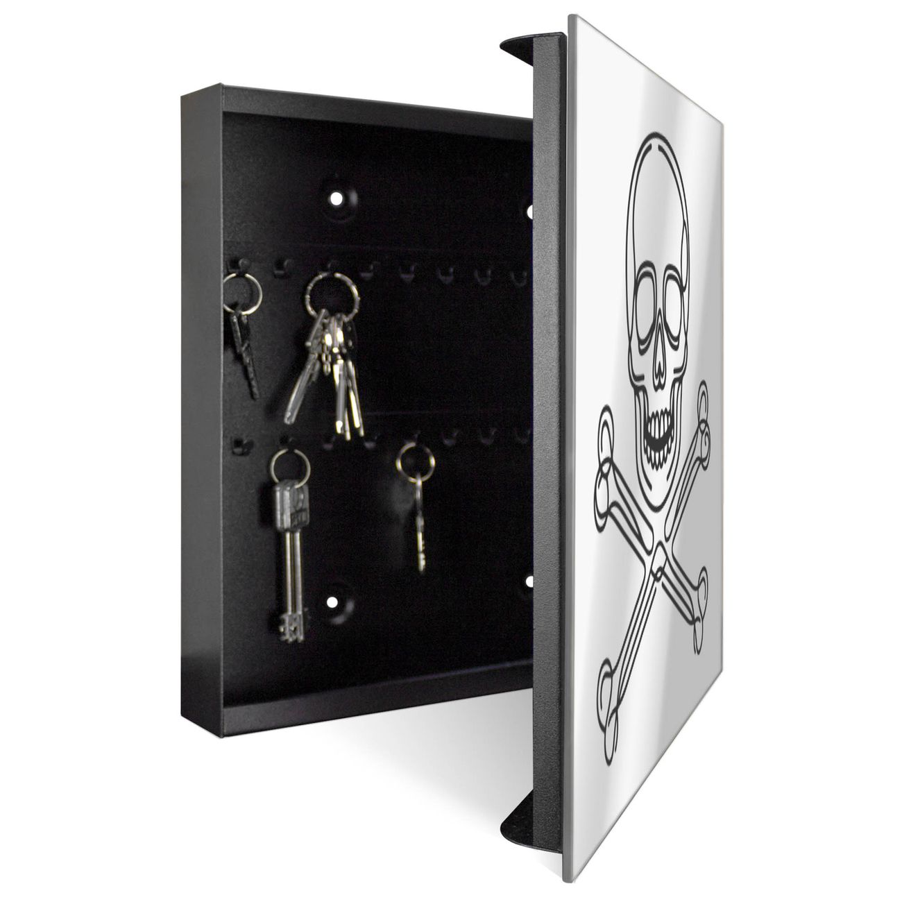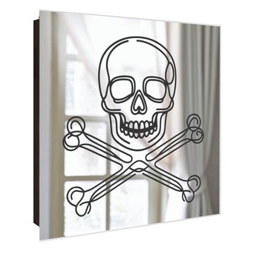 Spiegel Schlüsselkasten - Design Schlüsselbox Motiv Totenkopf und Knochen