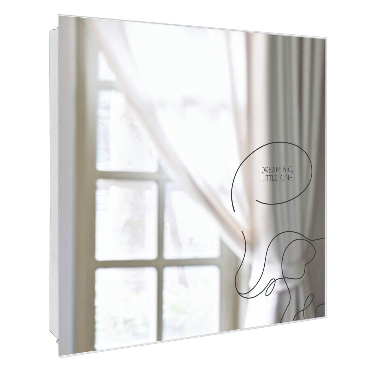 Bringe Ordnung und Stil in deinen Eingangsbereich mit dem banjado Schlüsselkasten mit Spiegel. Die elegante Spiegelfront kombiniert Funktionalität mit modernem Design und macht die Schlüsselaufbewahrung zu einem dekorativen Highlight. ✅ Spiegel Schlüsselaufbewahrung mit Motiv Motiv Träum gut kleiner Elefant Der Design-Schlüsselkasten Motiv Motiv Träum gut kleiner Elefant bietet Platz für bis zu 50 Schlüssel, die auf 5 stabilen Reihen mit je 10 Haken übersichtlich verstaut werden. Mit seinen kompakten Maßen von 30 x 30 x 5 cm passt die Schlüsselbox perfekt auch in kleinere Räume. Der weiß lackierte Stahlkorpus mit rechts angeschlagenem Türscharnier harmoniert mit der Spiegelfront und fügt sich nahtlos in jedes Wohnambiente ein. Ob als Schlüsselorganizer für Zuhause oder als praktische Lösung für Büros, Praxen und Gewerbe, der banjado Schlüsselkasten sorgt für Ordnung und Übersicht. Die Spiegelfront verleiht dem Eingangsbereich zusätzliche Funktionalität und lässt Räume optisch größer wirken. Die Schlüsselbox Motiv Motiv Träum gut kleiner Elefant zur Wandmontage wird inklusive Befestigungsmaterial geliefert und ist schnell angebracht. So hast du deine Schlüssel jederzeit griffbereit und zugleich stilvoll verstaut. Mit diesem banjado Schlüsselkasten Motiv Motiv Träum gut kleiner Elefant kombinierst du praktische Aufbewahrung mit stilvollem Wohndesign. Ob privat oder geschäftlich, die Schlüsselbox sorgt für mehr Ordnung, Übersicht und ein wohnliches Ambiente.Vorteile im Überblick